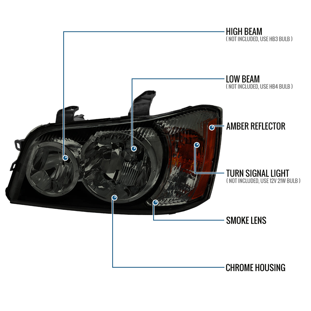 Ronnin - Fits 2001-2003 Toyota Highlander Factory Replacement Headlights Headlamp Assembly Pair | Black Smoke