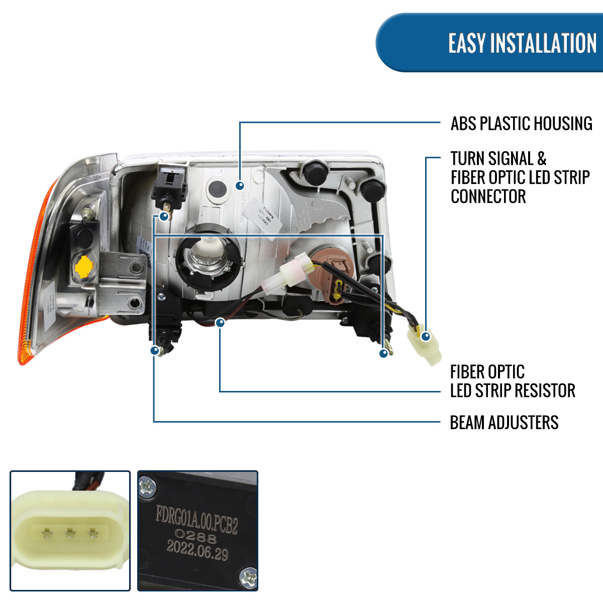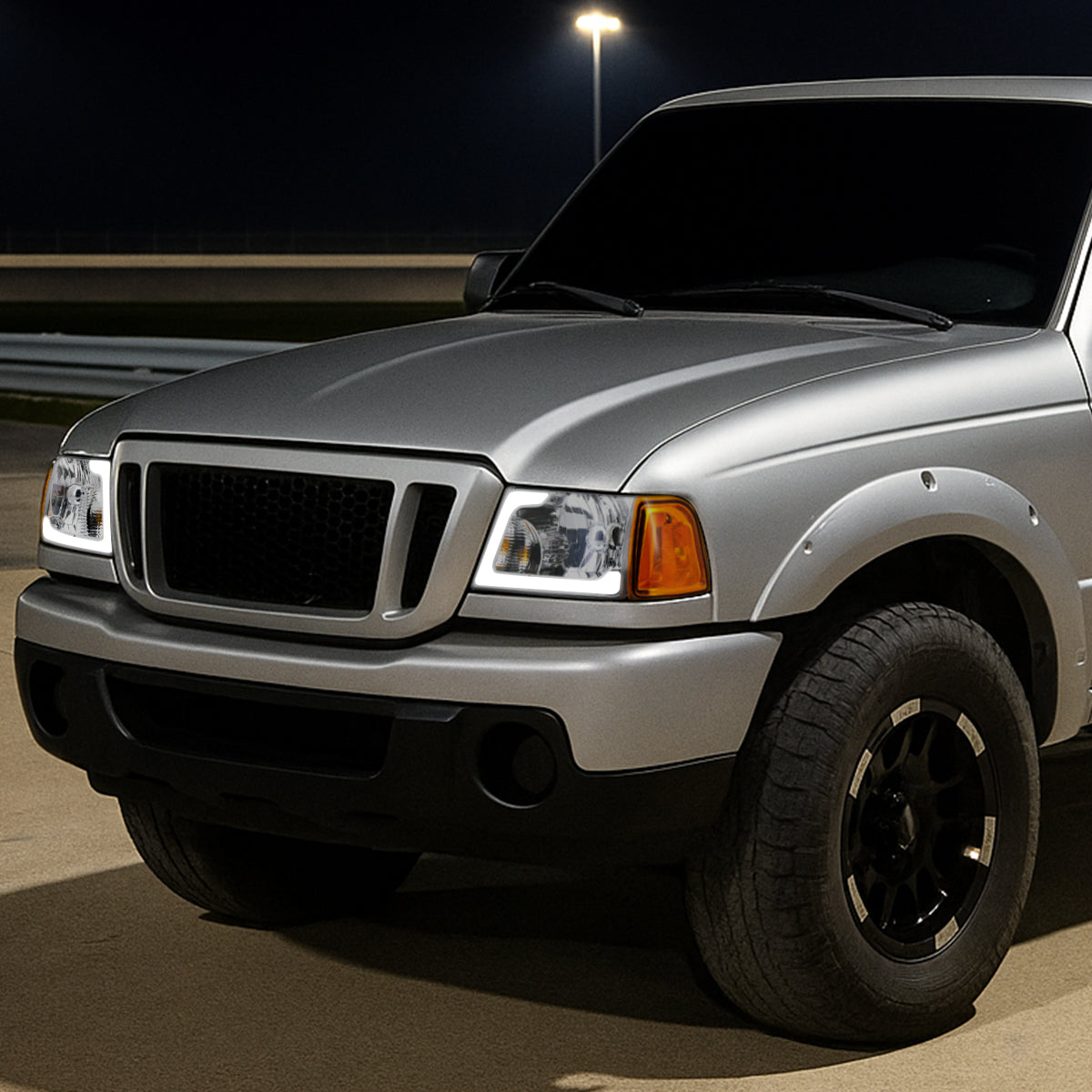 Ronnin - Fits 2001-2011 Ford Ranger Upgraded LED Running Tube Lights Headlights + Amber Corner Lamps Replacement Assembly Pair | Chrome