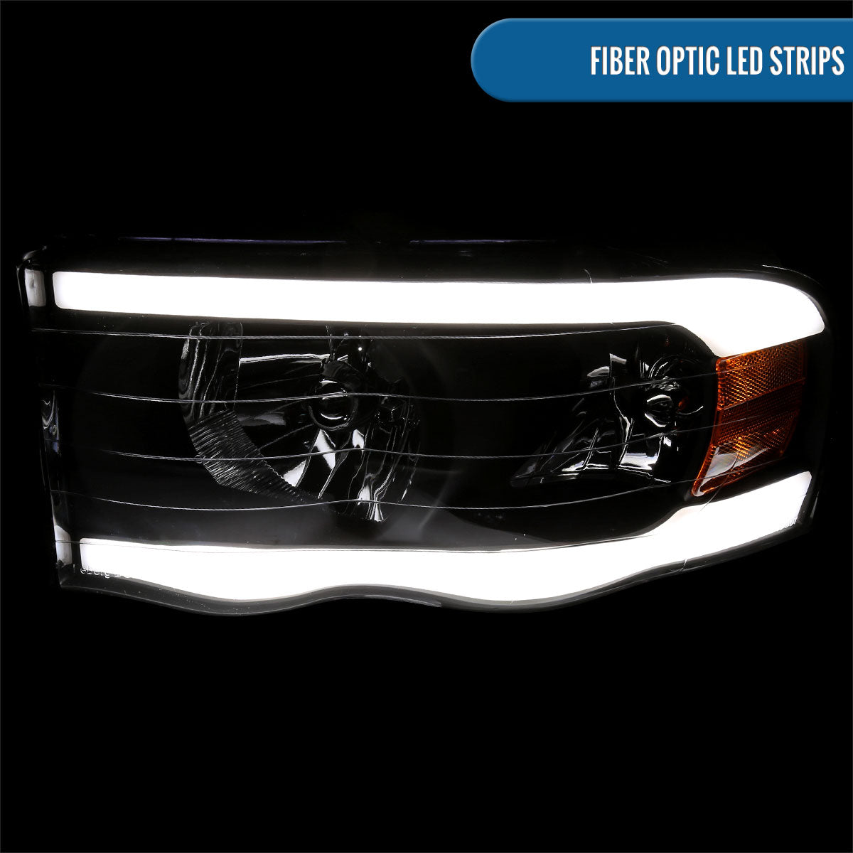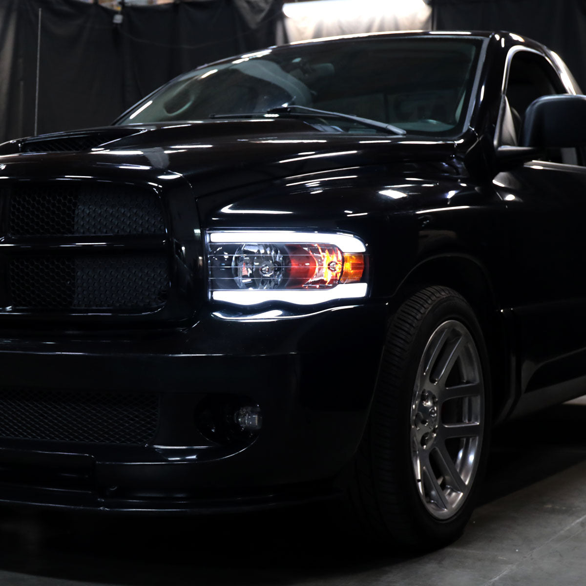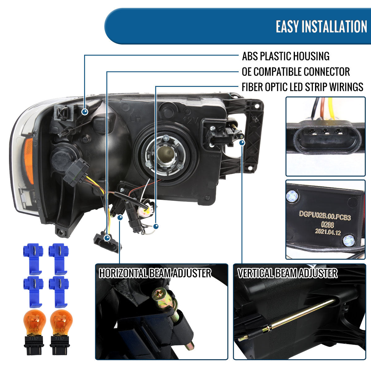 Ronnin - Fits 2002-2005 Dodge Ram 1500 2500 3500 Upgraded LED Tube Running Lights Headlights Replacement Assembly Pair | Black