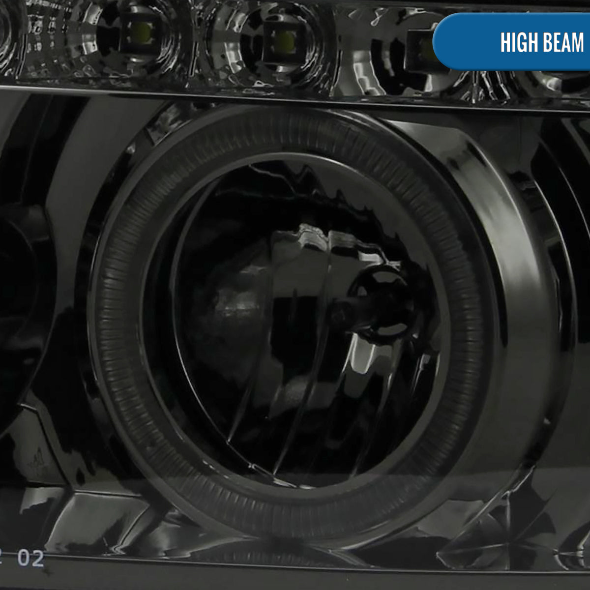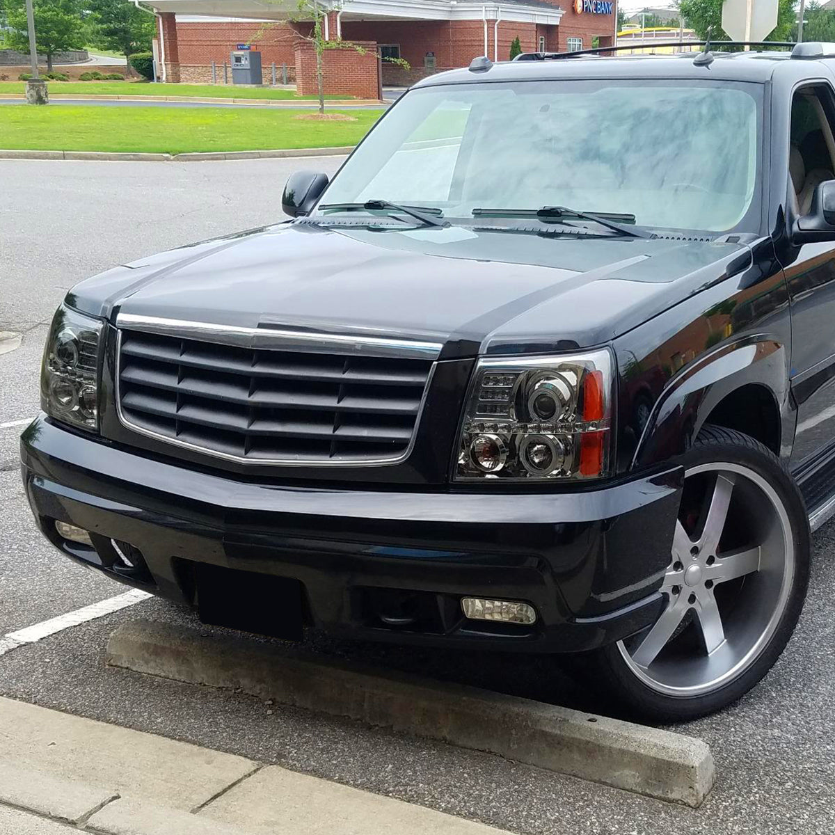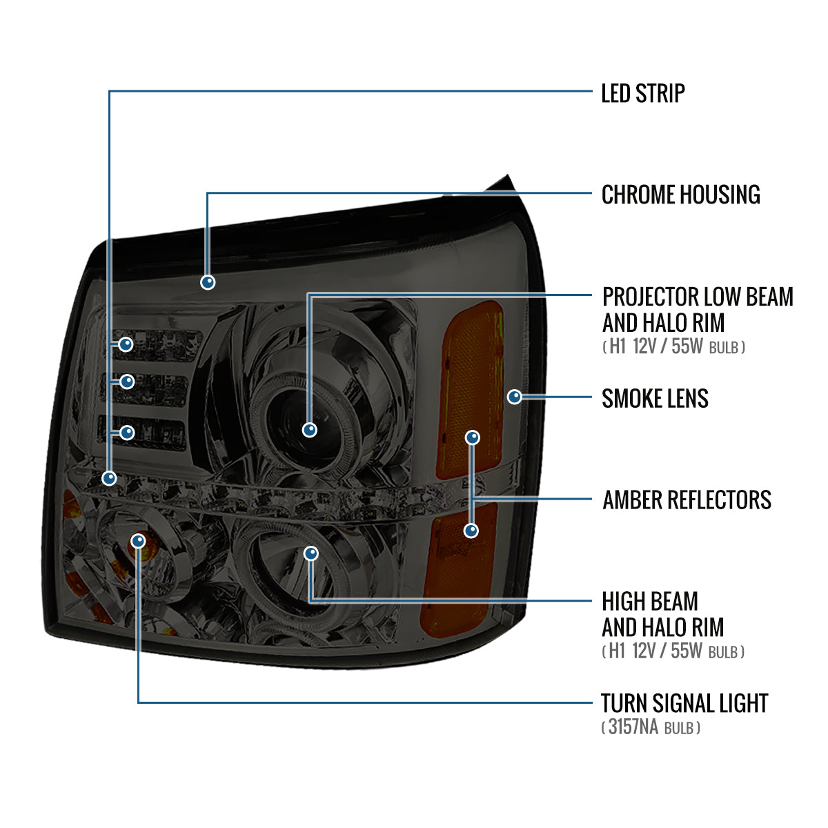 Ronnin - Fits 2002-2006 Cadillac Escalade Upgraded Replacement LED Dual Angel Eyes Halogen Projector Headlights Assembly Pair | Smoke
