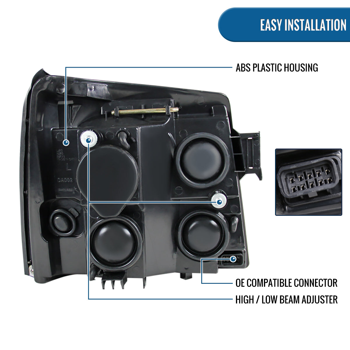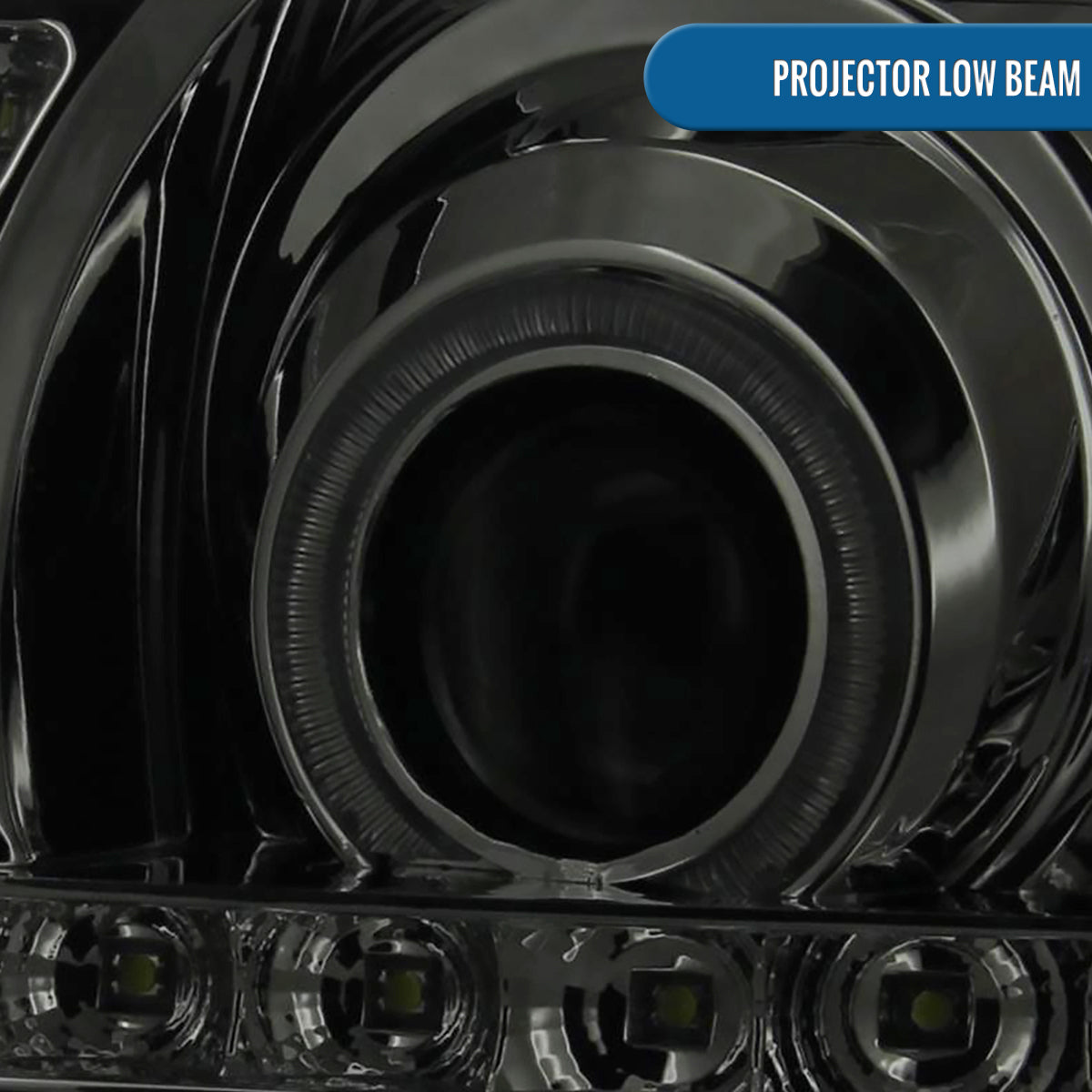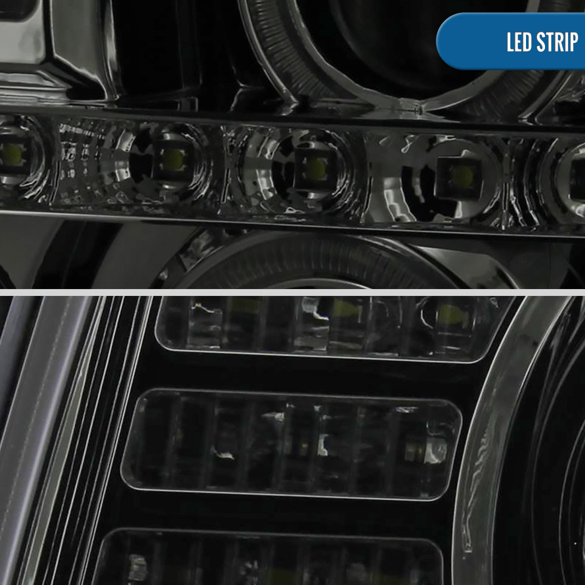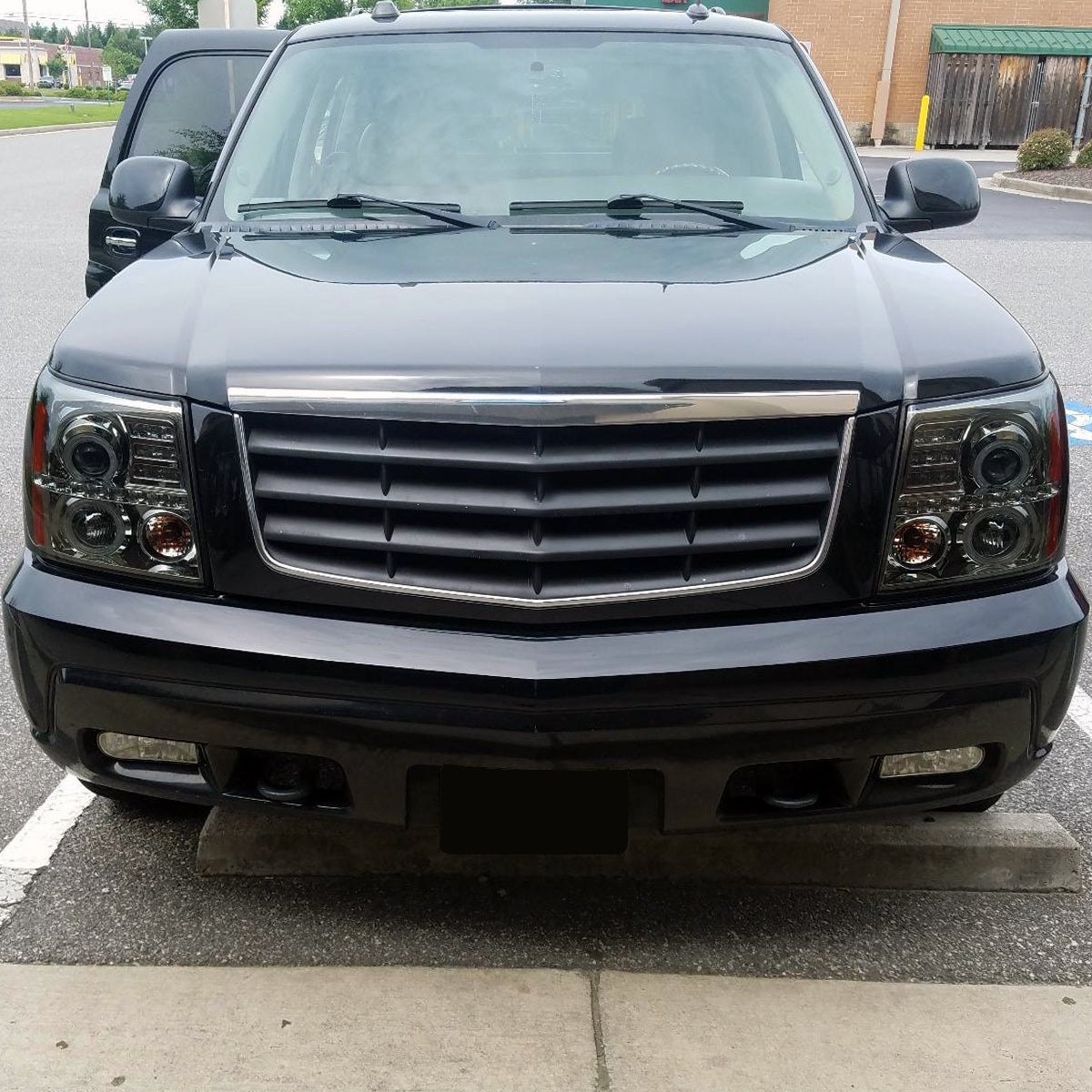 Ronnin - Fits 2002-2006 Cadillac Escalade Upgraded Replacement LED Dual Angel Eyes Halogen Projector Headlights Assembly Pair | Smoke