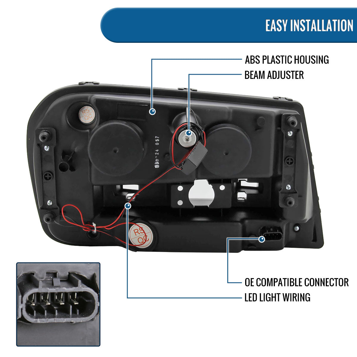 Ronnin - Fits 2002-2009 Chevy Trailblazer Upgraded Replacement LED Running Lights Halogen Projector Headlights Assembly Pair | Chrome
