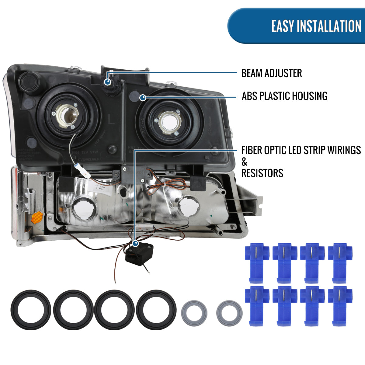 Ronnin - Fits 2003-2006 Chevy Silverado 1500 2500 3500 2002-2006 Avalanche Upgraded LED Running Tube Light Headlights + Bumper Lamps Replacement Assembly Pair | Smoke