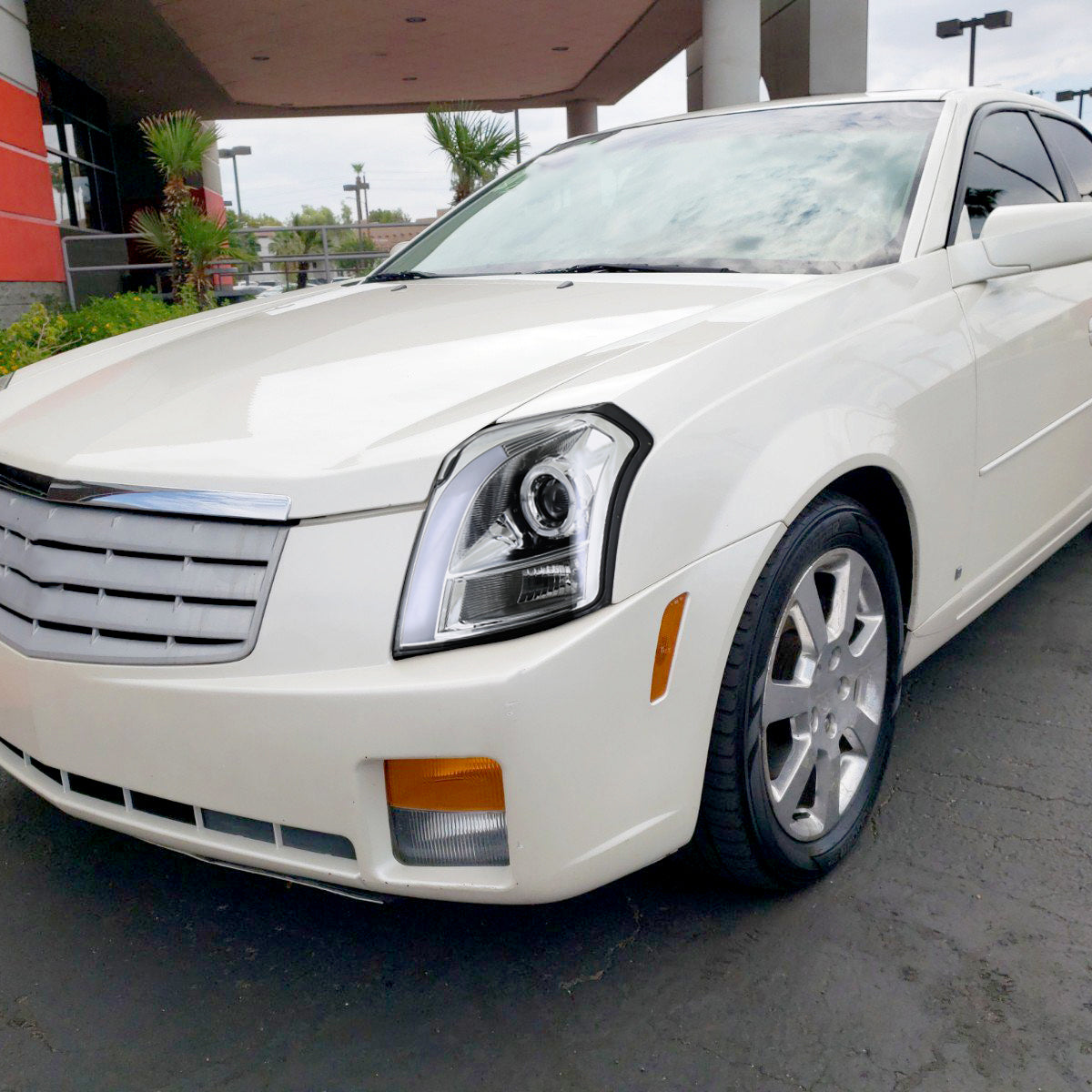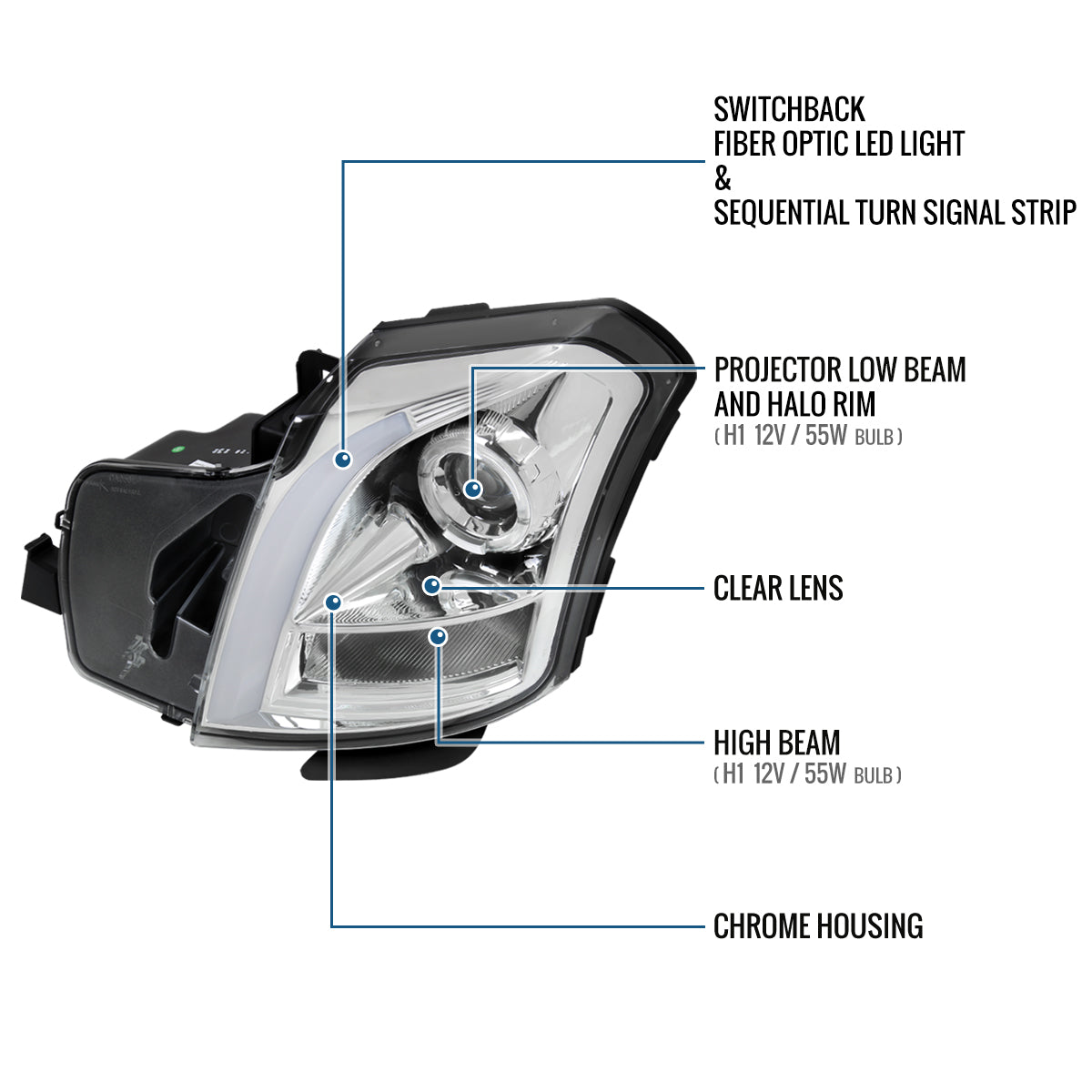 Ronnin - Fits 2003-2007 Cadillac CTS Upgraded Replacement LED Tube Switchback Sequential Turn Signal Halogen Projector Headlights Assembly Pair | Chrome