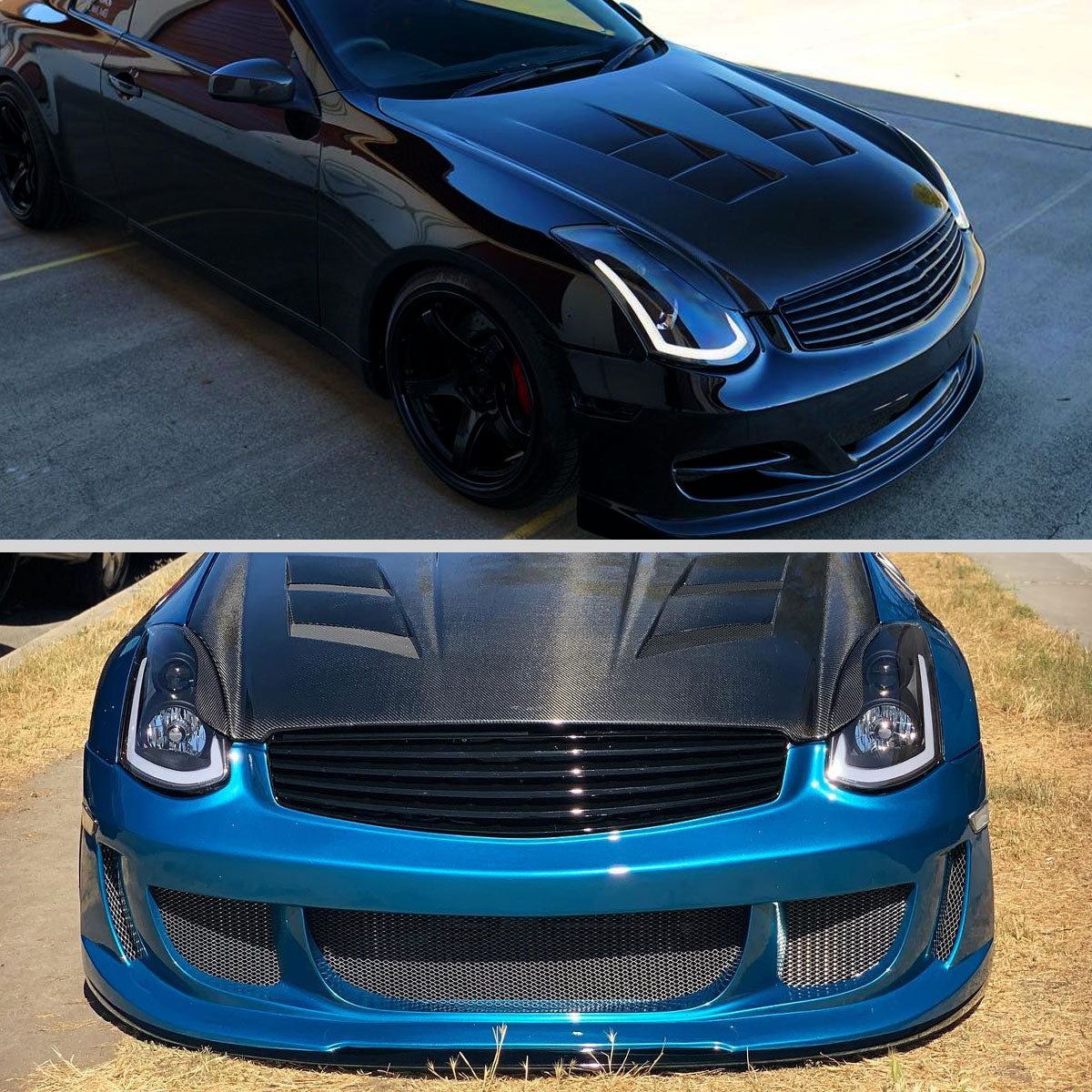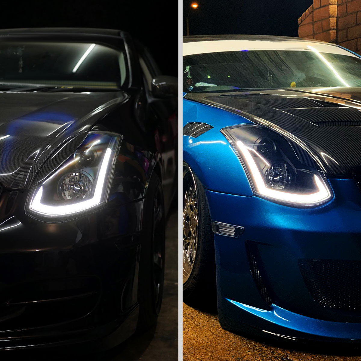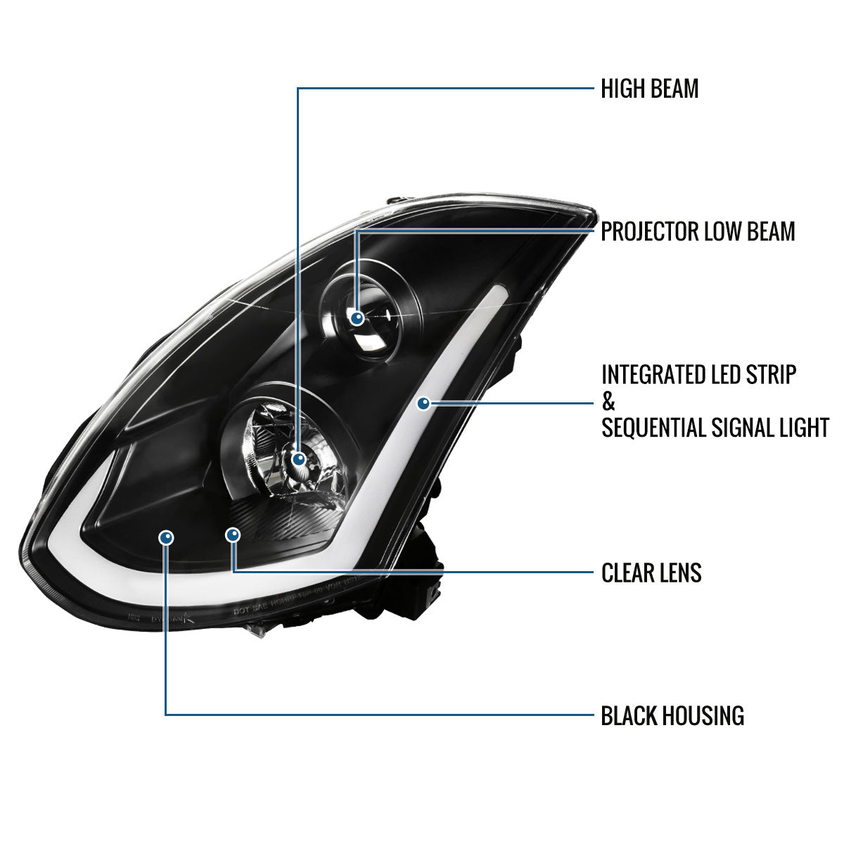 Ronnin - Fits 2003-2007 Infiniti G35 Coupe Upgraded Replacement LED Switchback Sequential Turn Signals Xenon HID Projector Headlights Assembly Pair | Black