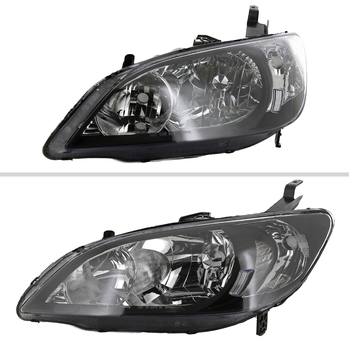 Ronnin - Fits 2004-2005 Honda Civic 2-Door Coupe 4-Door Sedan Headlights Pair | Black