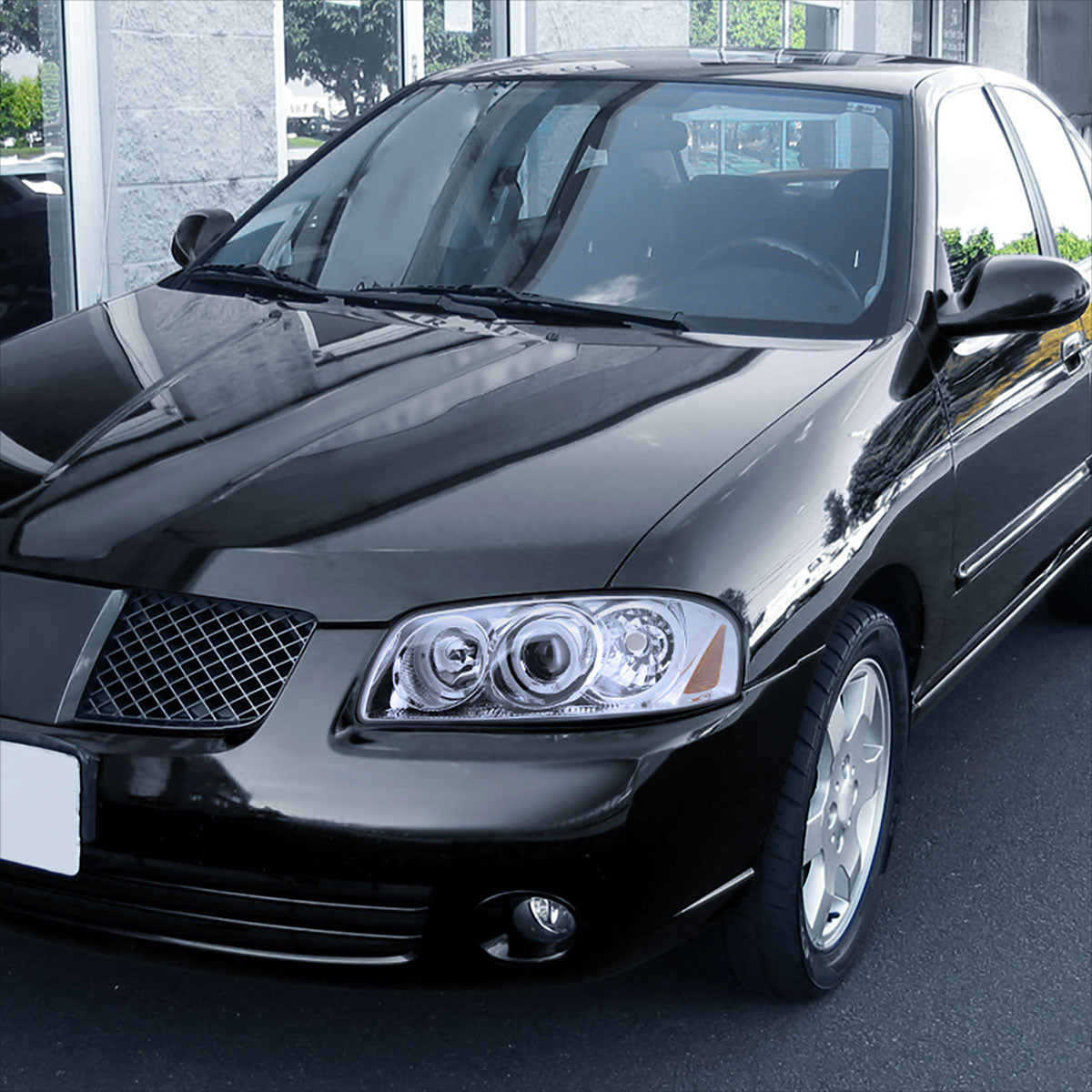 Ronnin - Fits 2004-2006 Nissan Sentra Upgraded LED Dual Rims Projector Headlights Assembly Pair | Chrome