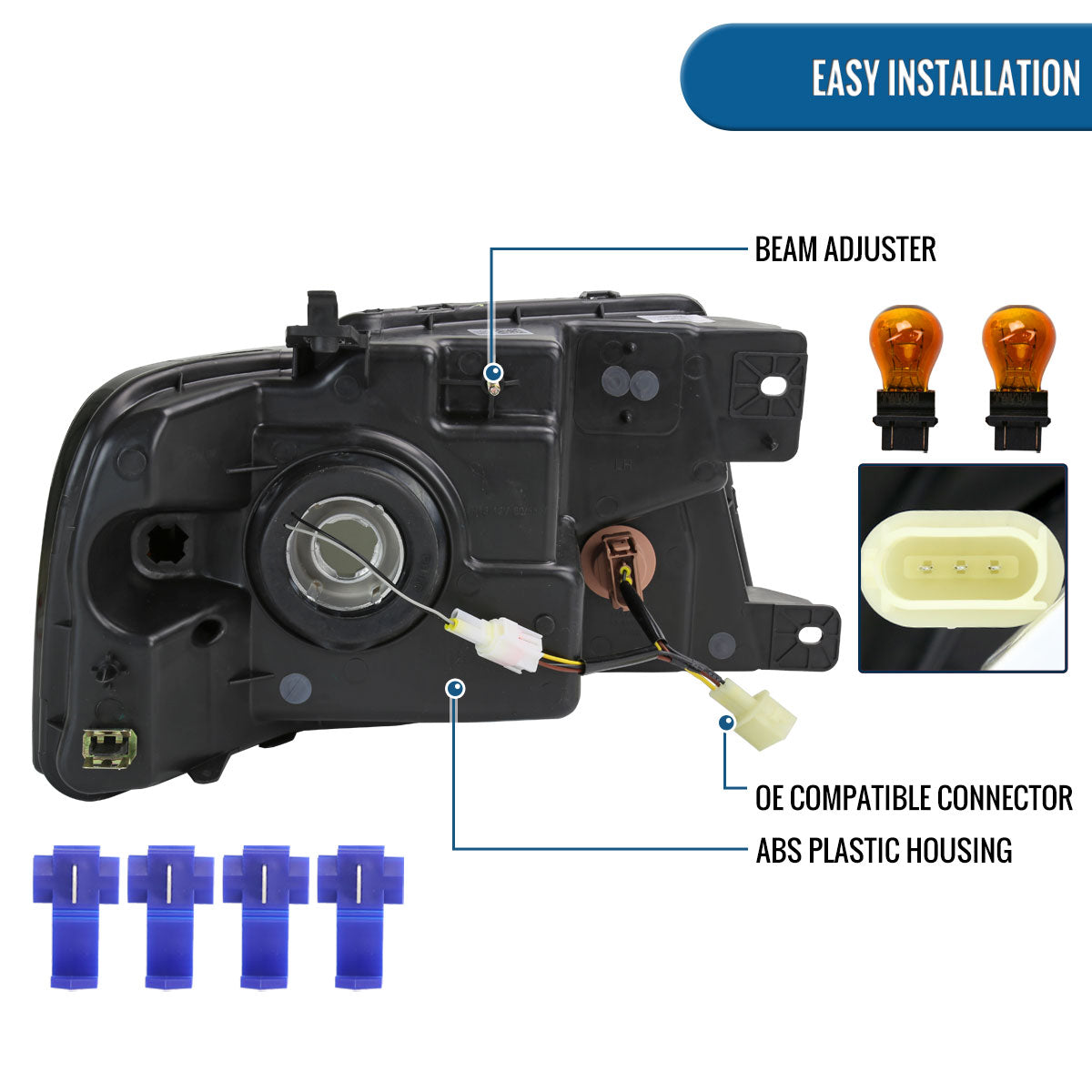 Ronnin - Fits 2004-2008 Ford F150 2006-2008 Lincoln Mark LT Headlights Assembly LED Tube Parking Lamps Replacement Pair | Black