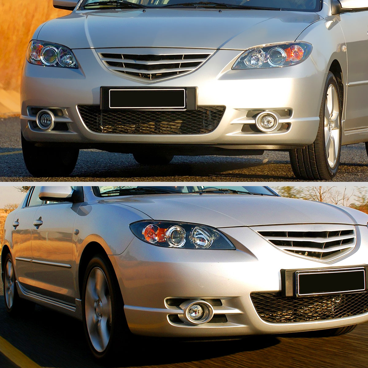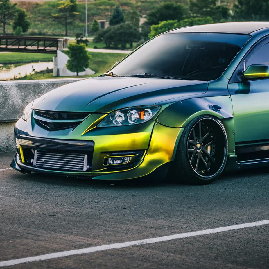 Ronnin - Fits 2004-2009 Mazda 3 Sedan 4-Door Projector Headlights Halogen Models Replacement Pair | Glossy Black
