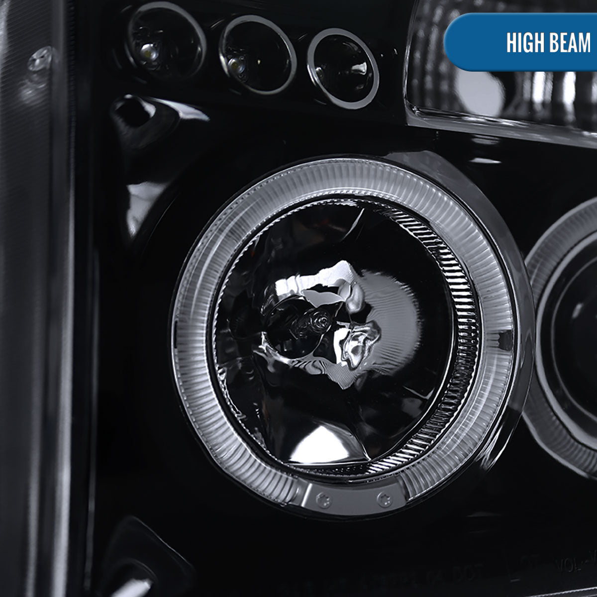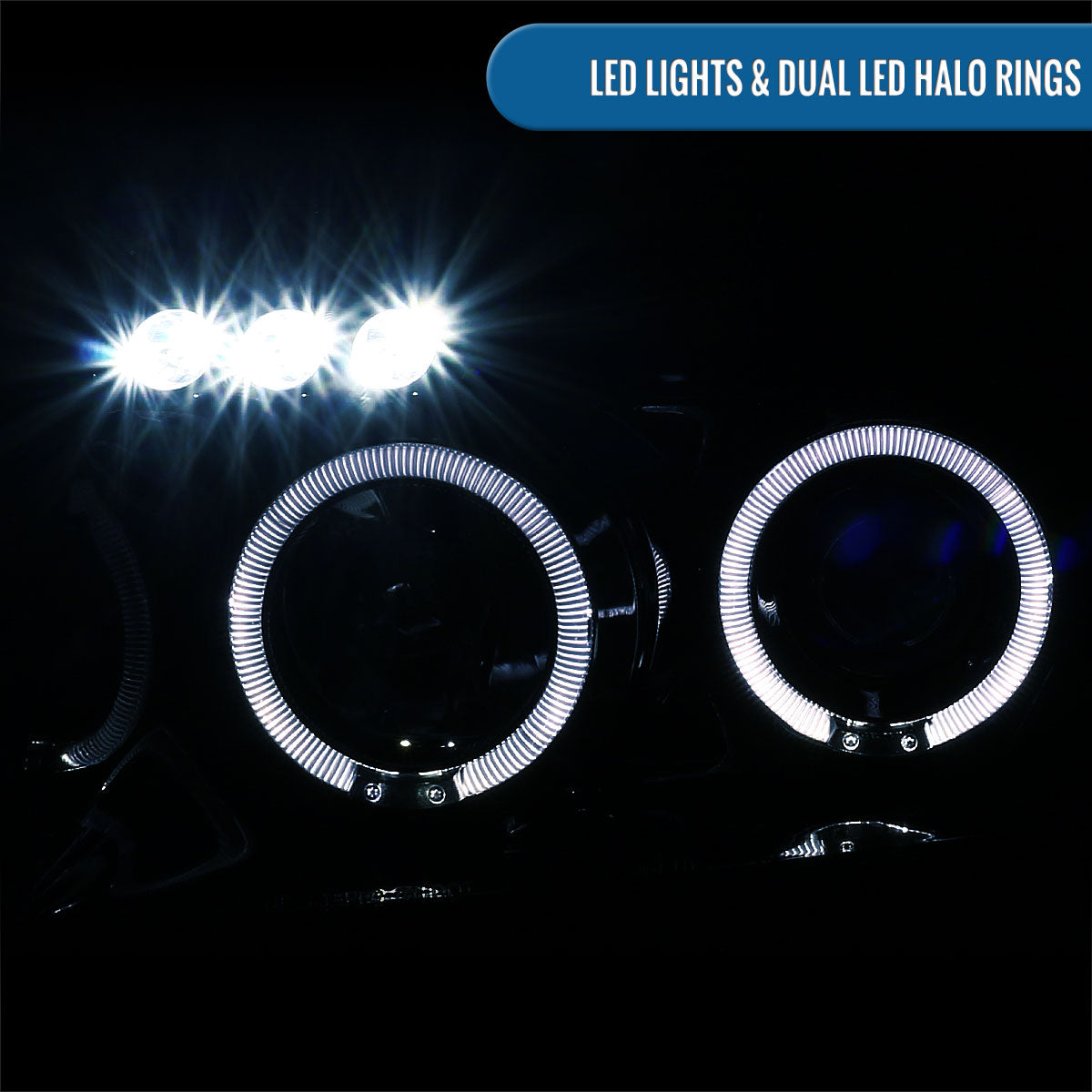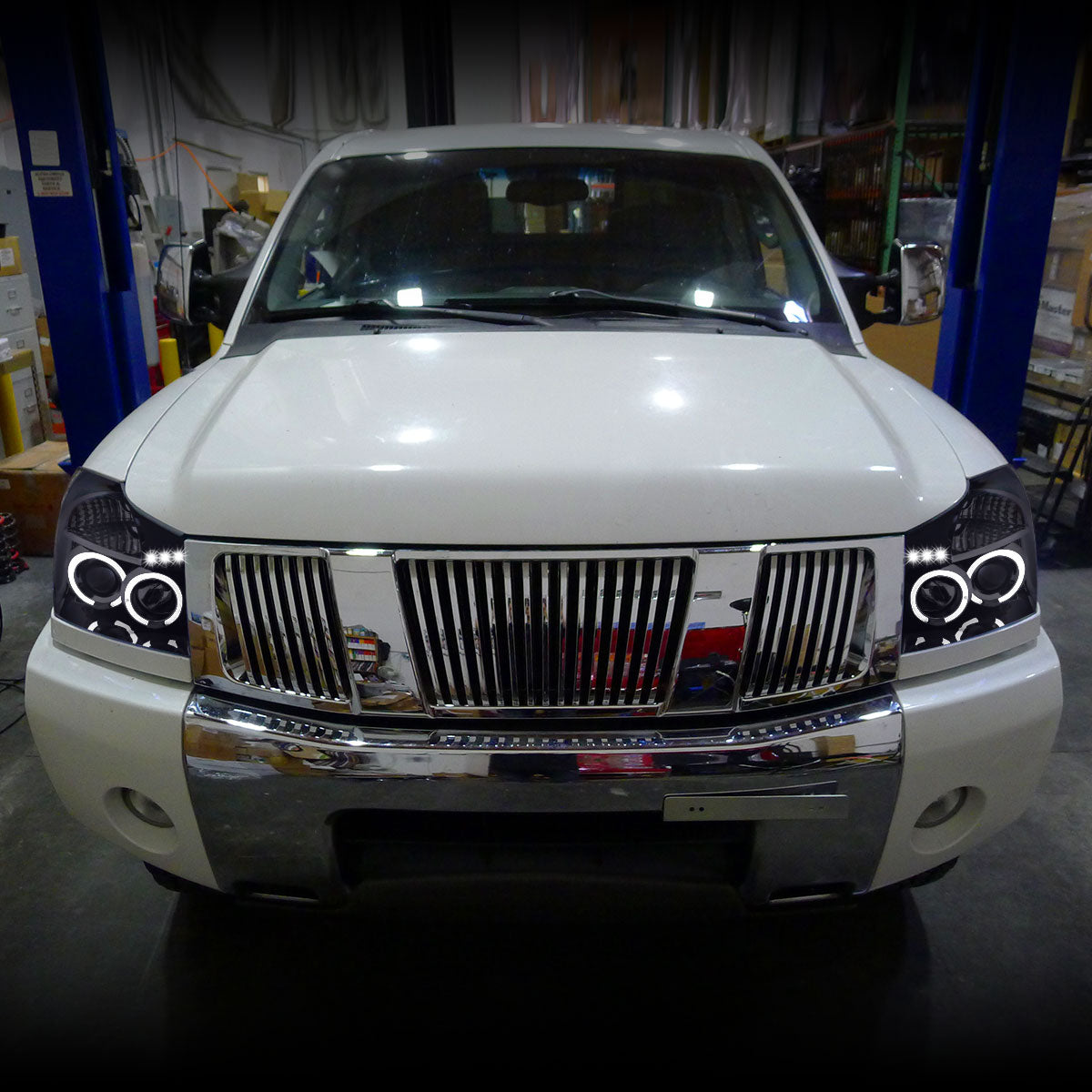 Ronnin - Fits 2004-2015 Nissan Armada Titan Upgraded Assembly LED Dual Halo Rims Projector Headlights Replacement Pair | Black Smoke