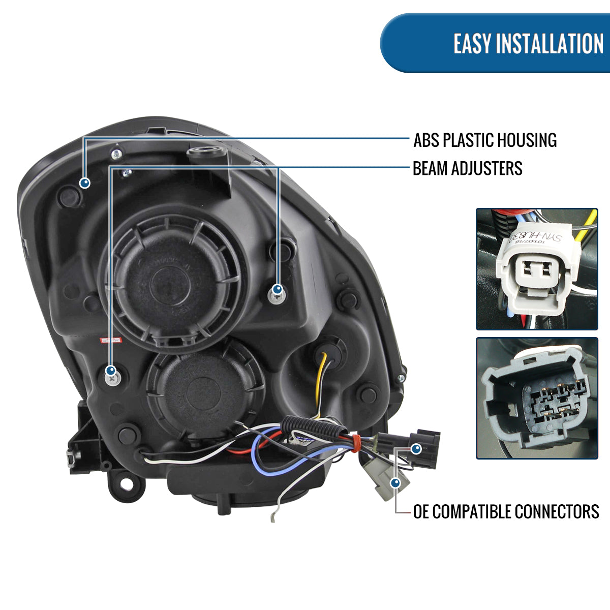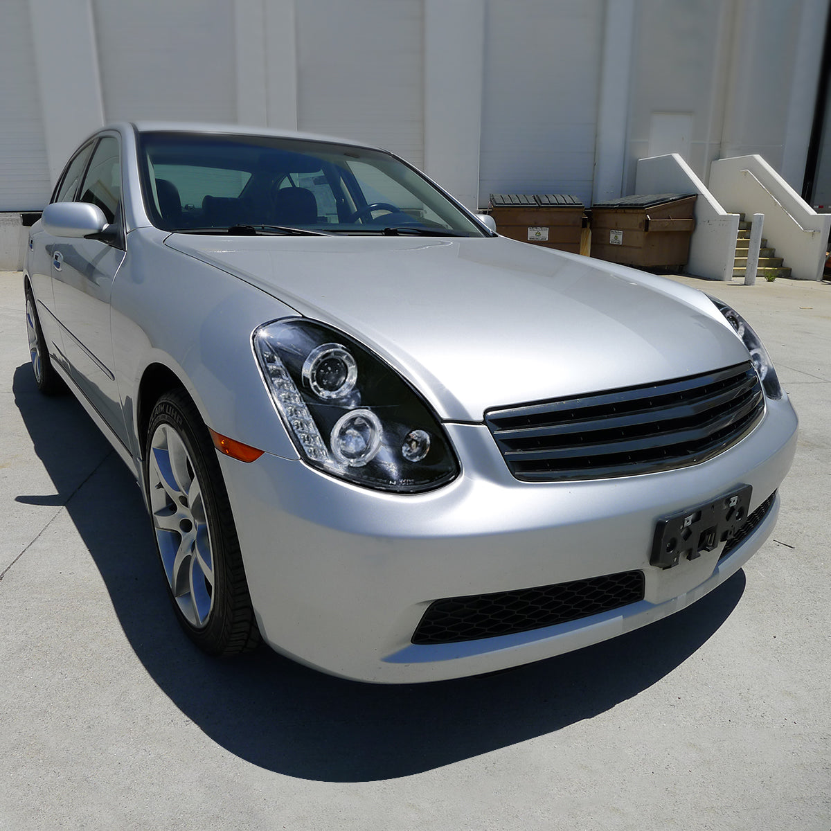 Ronnin - Fits 2005-2006 Infiniti G35 Sedan Projector Headlights LED Running Lights Assembly Pair | Black
