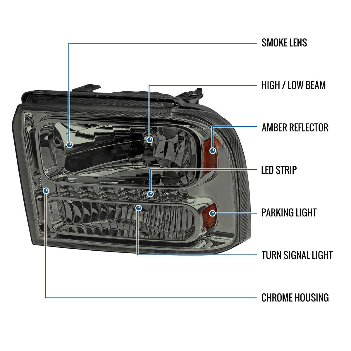 Ronnin - Fits 2005-2007 Ford F250 F350 F450 F550 2005 US Excursion Upgraded Headlights LED Running Lights Assembly Pair | Smoke