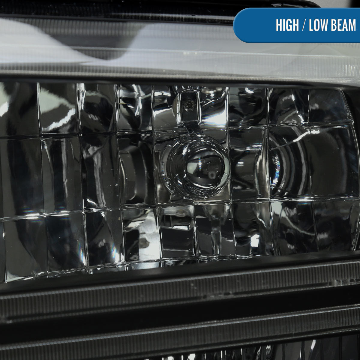 Ronnin - Fits 2005-2007 Ford F250 F350 F450 F550 Super Duty/2005 Excursion Upgraded LED Tube Running Lights Headlights Replacement Assembly Pair | Black Smoke