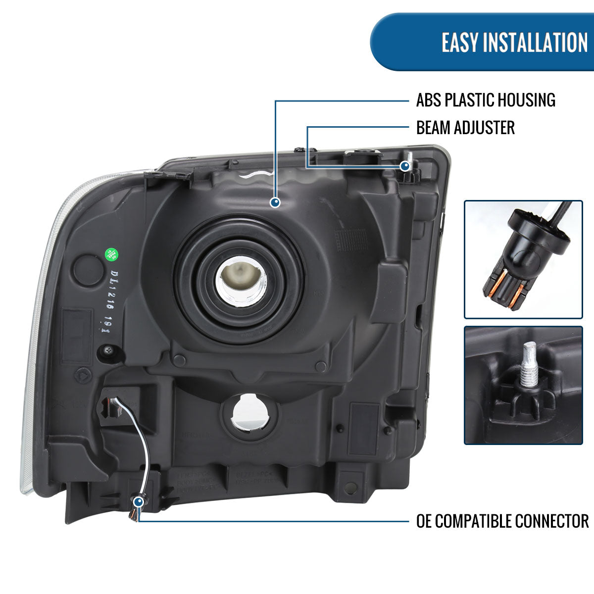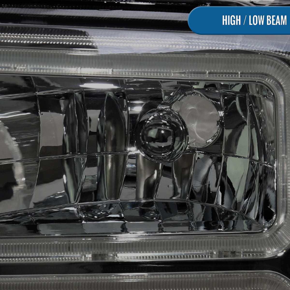 Ronnin - Fits 2005-2007 Ford F250 F350 F450 F550 Super Duty/2005 Excursion Upgraded LED Tube Running Lights Headlights Replacement Assembly Pair | Smoke