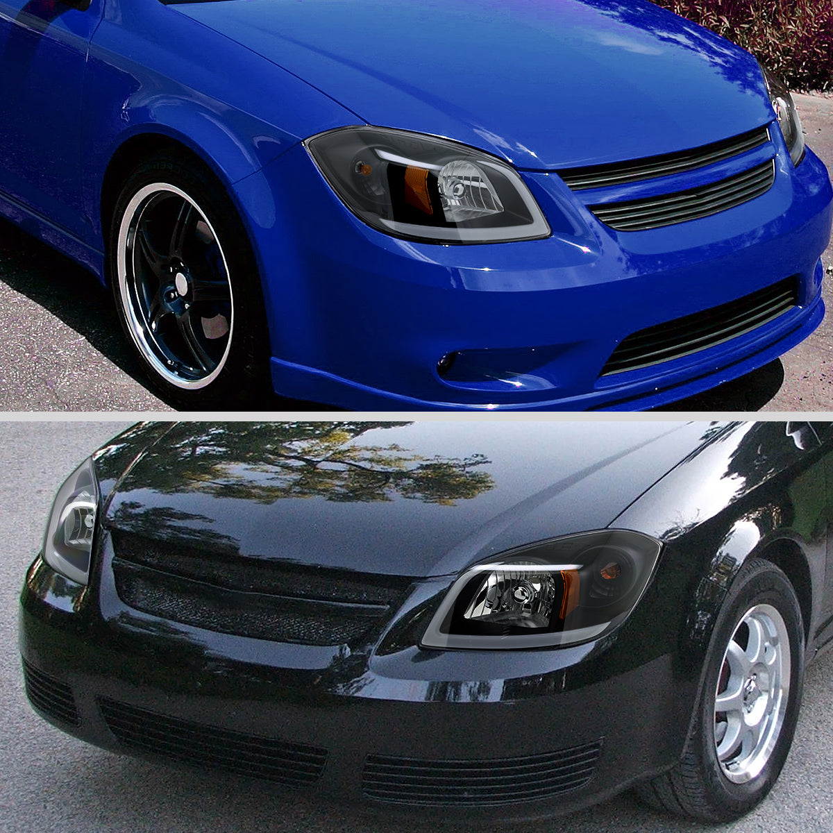 Ronnin - Fits 2005-2010 Chevy Cobalt Pontiac G5 Pursuit Upgraded Factory Replacement LED Tube Running Lights Headlights Assembly Pair | Black