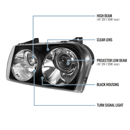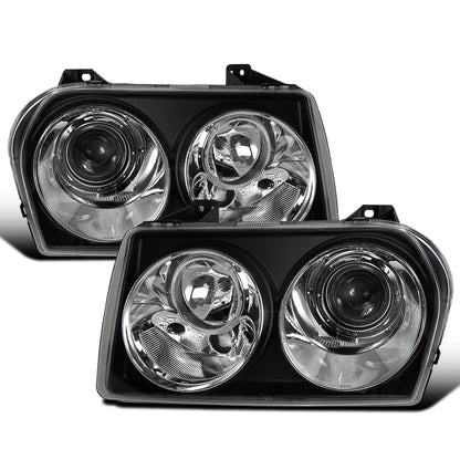 Ronnin - Fits 2005-2010 Chrysler 300 Factory Replacement Halogen Projector Headlights Assembly Pair | Black