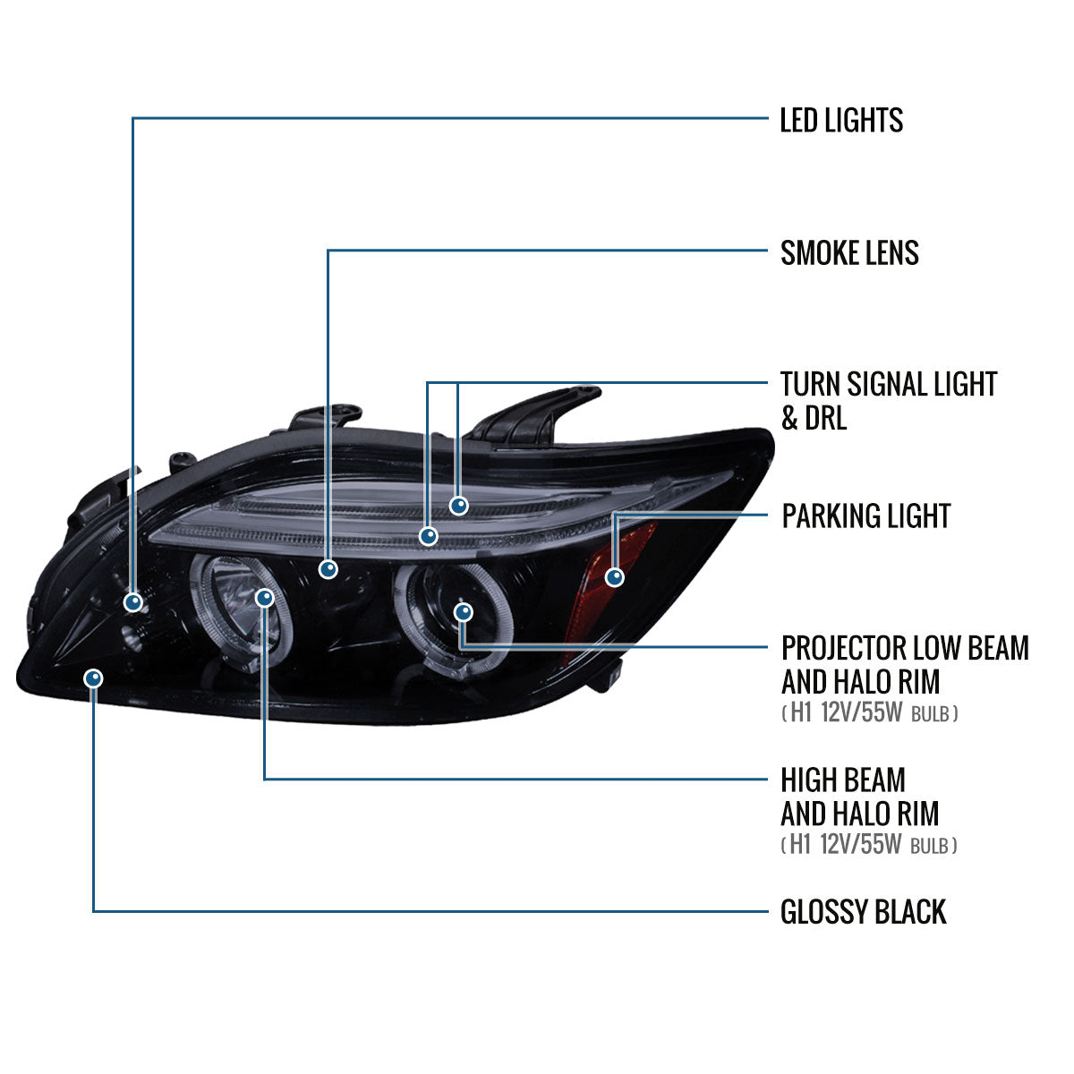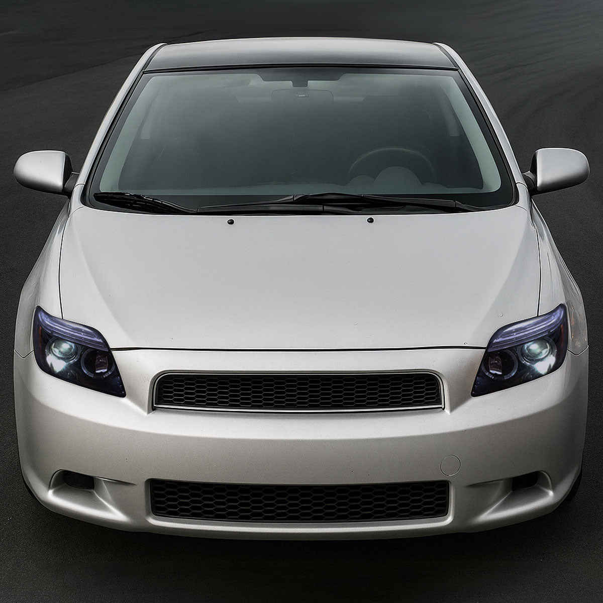 Ronnin - Fits 2005-2010 Scion tC LED Halo Rims Projector Headlights Upgrade Assembly Pair | Black Smoke
