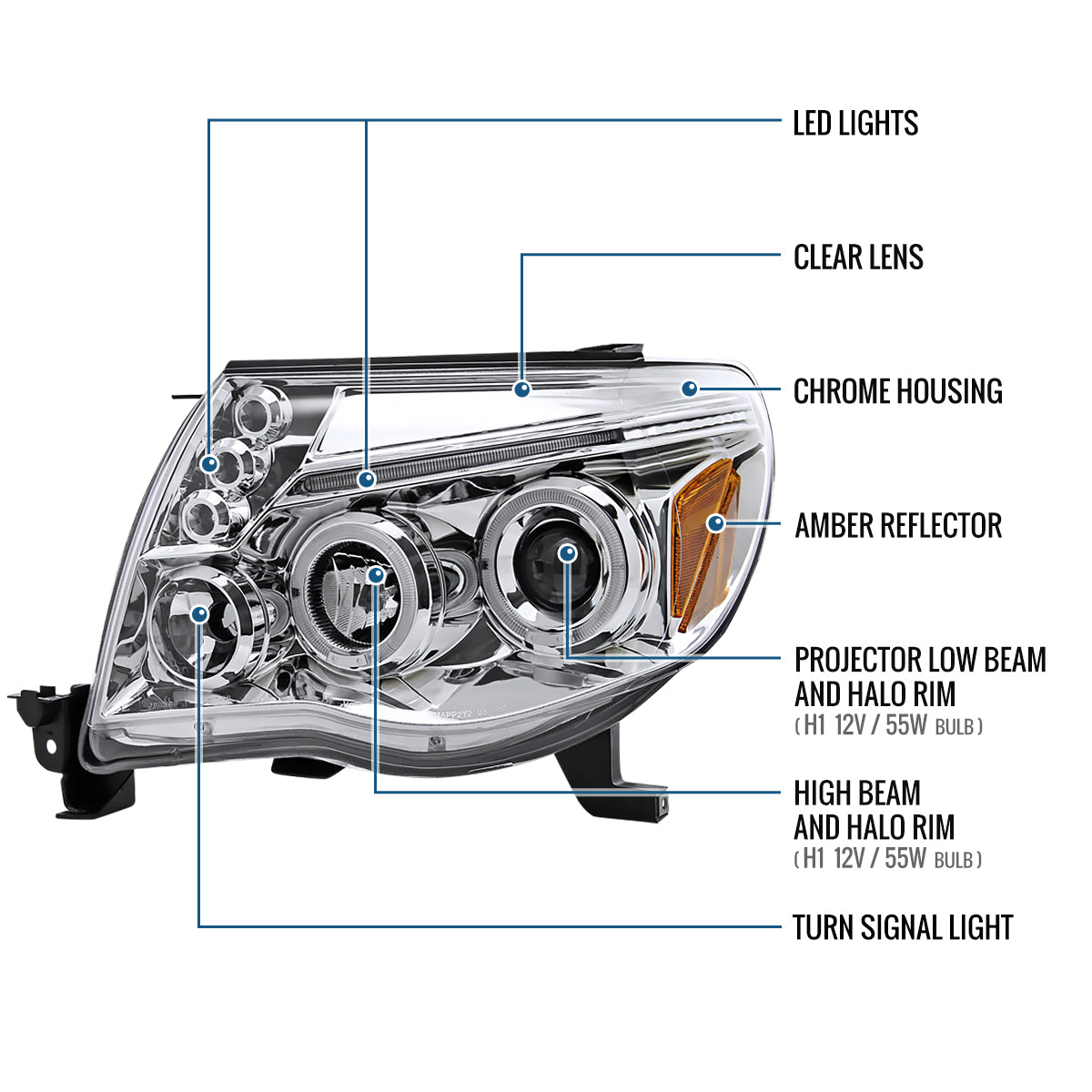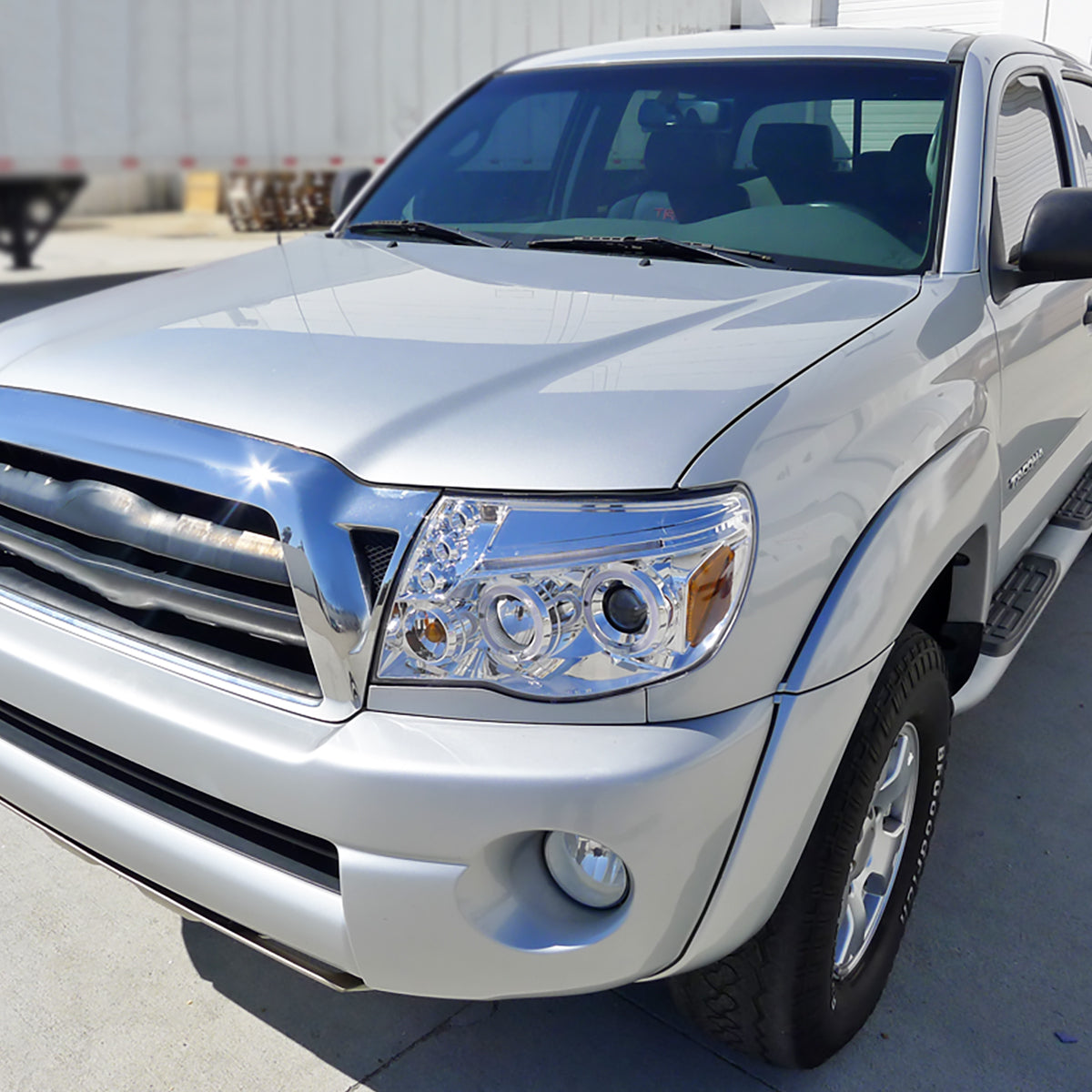 Ronnin - Fits 2005-2011 Toyota Tacoma Upgraded Assembly LED Dual Rims Projector Headlights Pair | Chrome