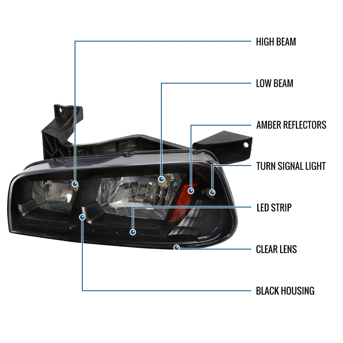 Ronnin - Fits 2006-2010 Dodge Charger Upgraded LED Running Lights Halogen Headlights Assembly Pair | Black