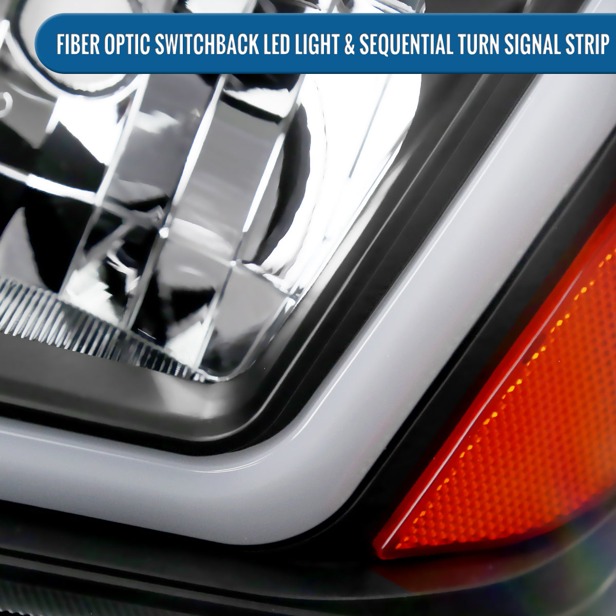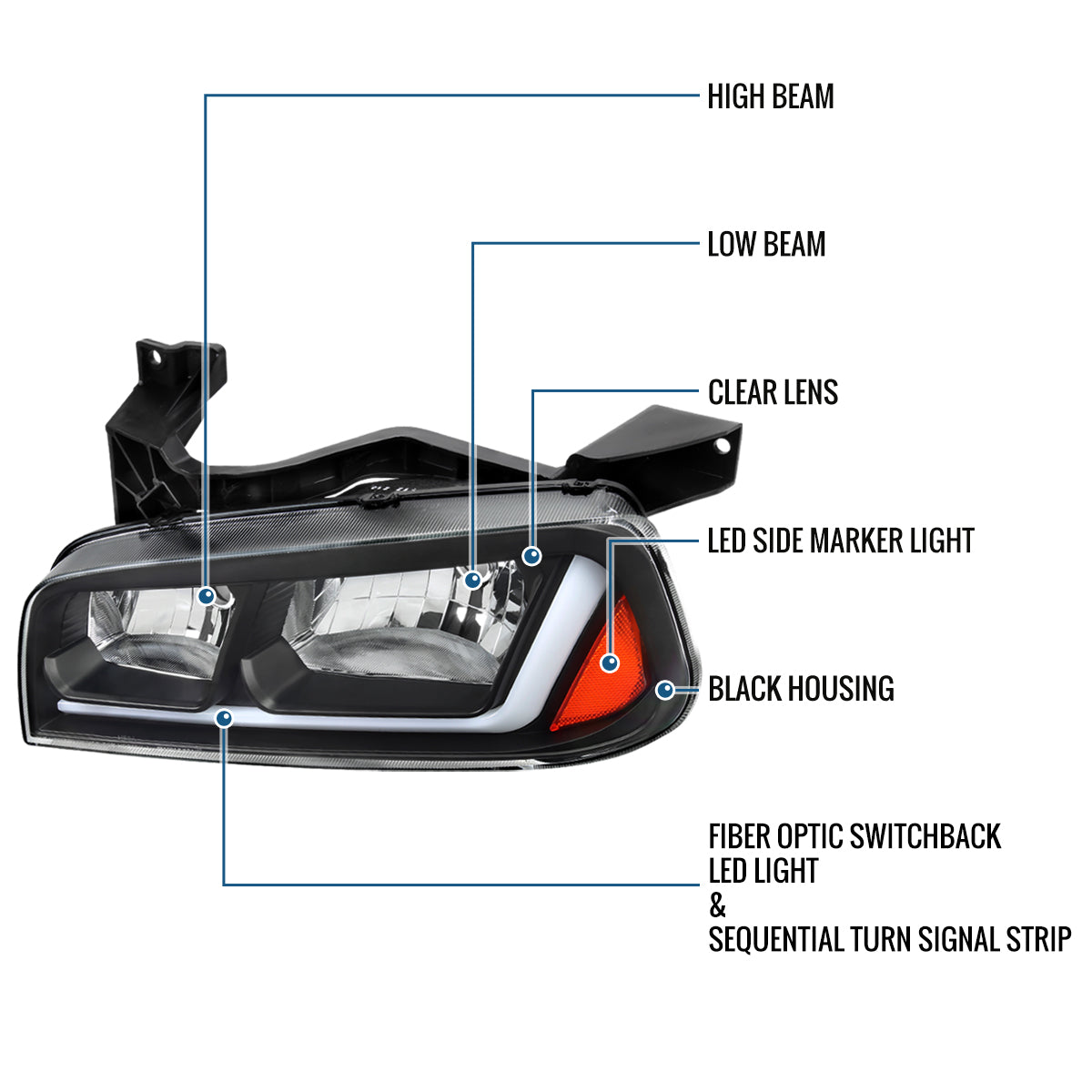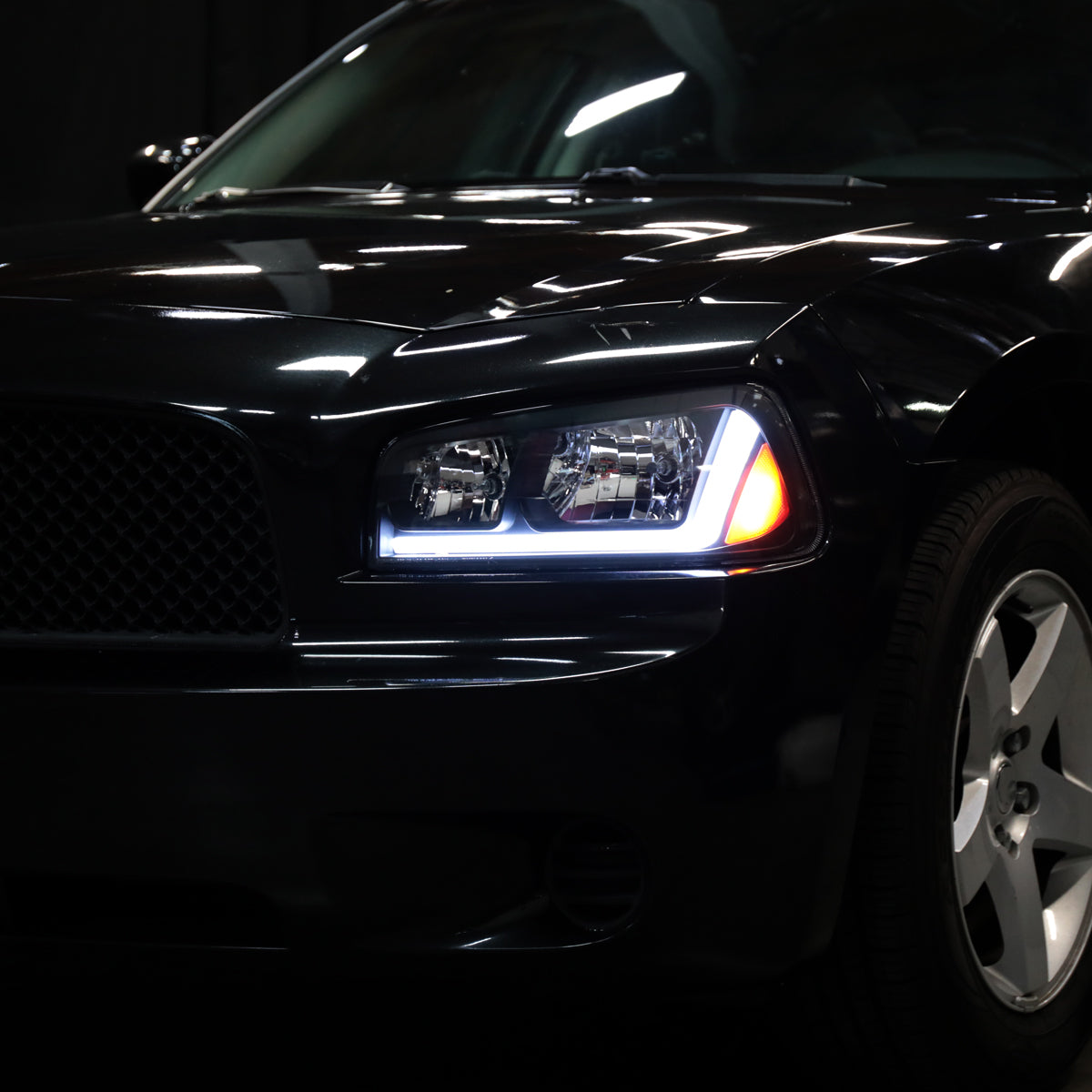 Ronnin - Fits 2006-2010 Dodge Charger Upgraded Replacement LED Tube Switchback Sequential Turn Signal Halogen Headlights Assembly Pair | Black