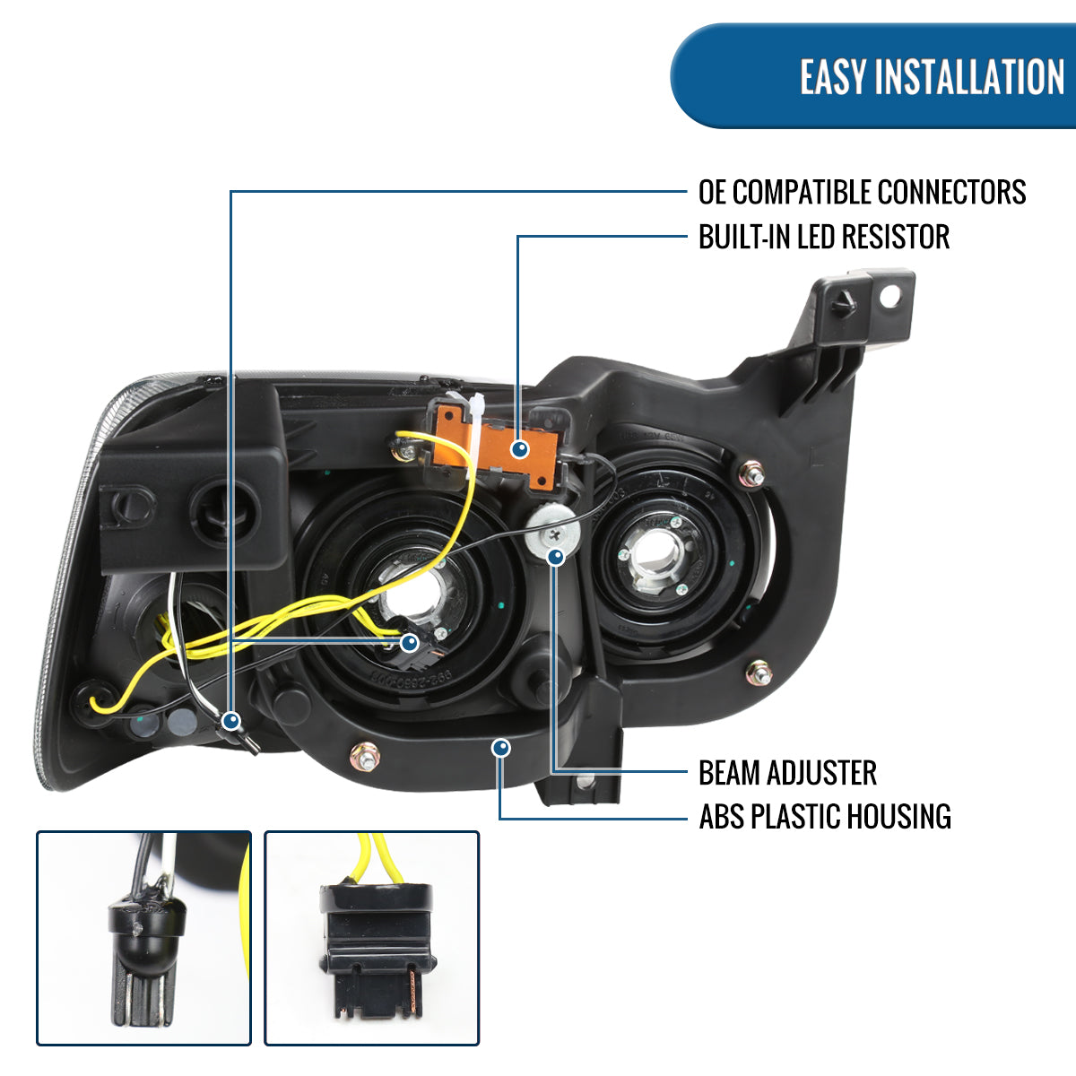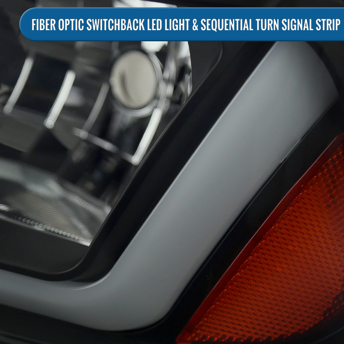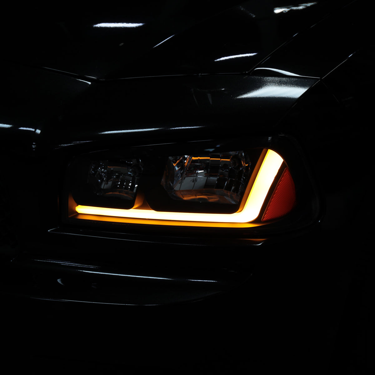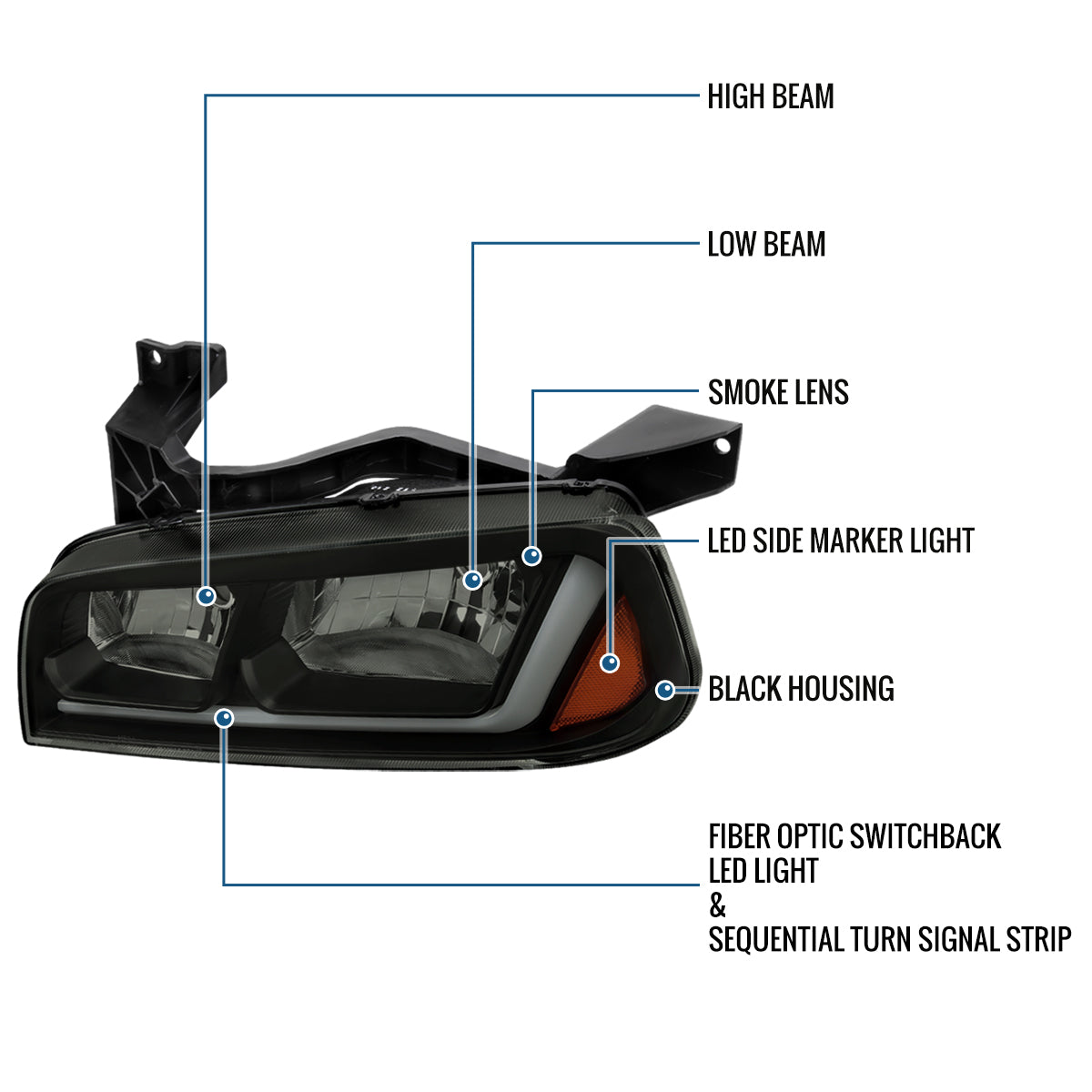 Ronnin - Fits 2006-2010 Dodge Charger Upgraded Replacement LED Tube Switchback Sequential Turn Signal Halogen Headlights Assembly Pair | Black Smoke