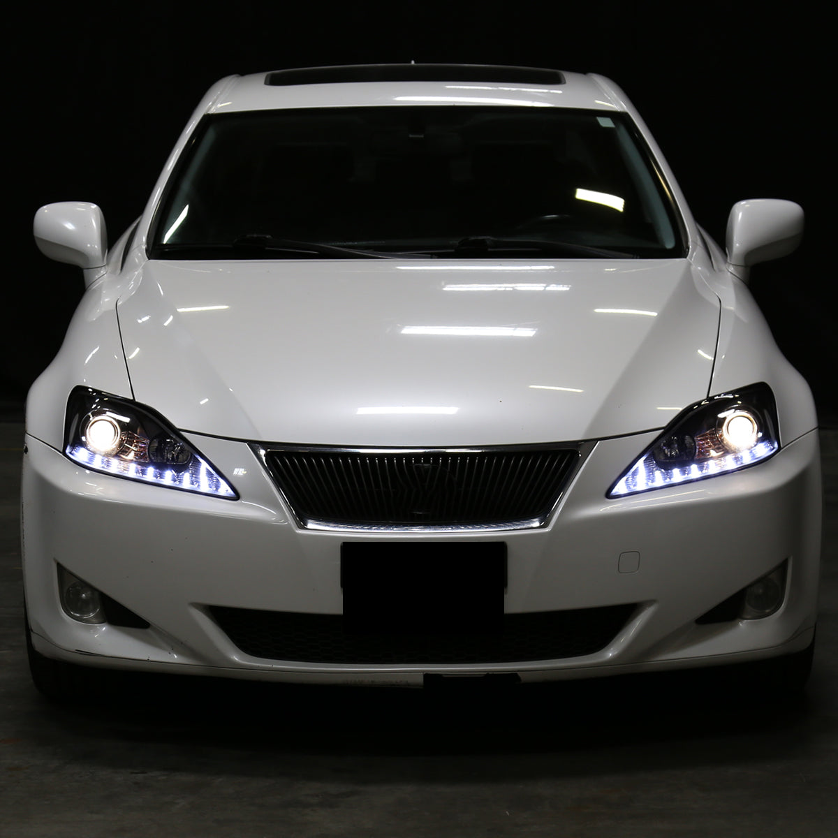 Ronnin - Fits 2006-2010 Lexus IS250 IS350 Upgrade Projector Halogen Headlights Assembly LED Integrated Running and Turn Signal Lights Pair | Black