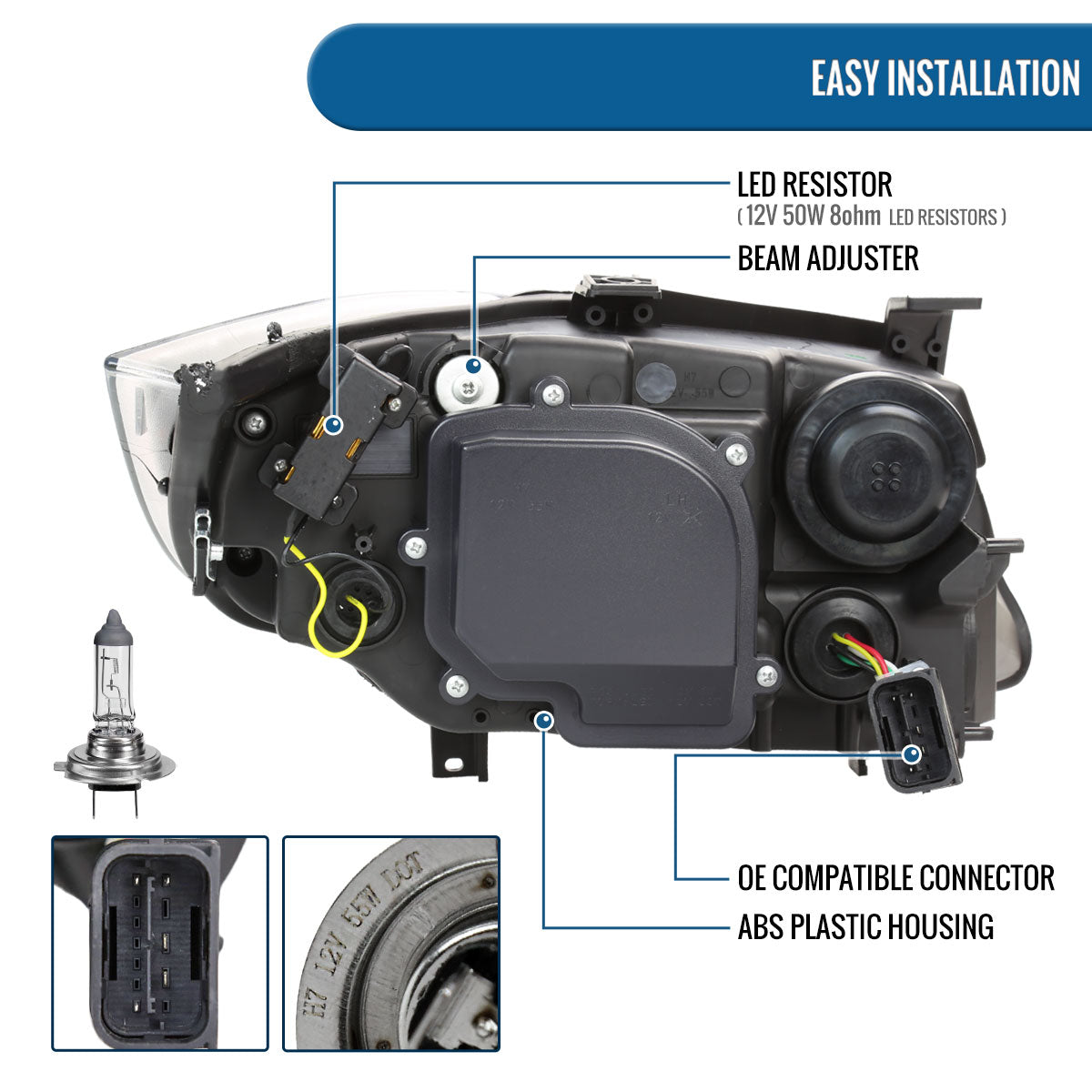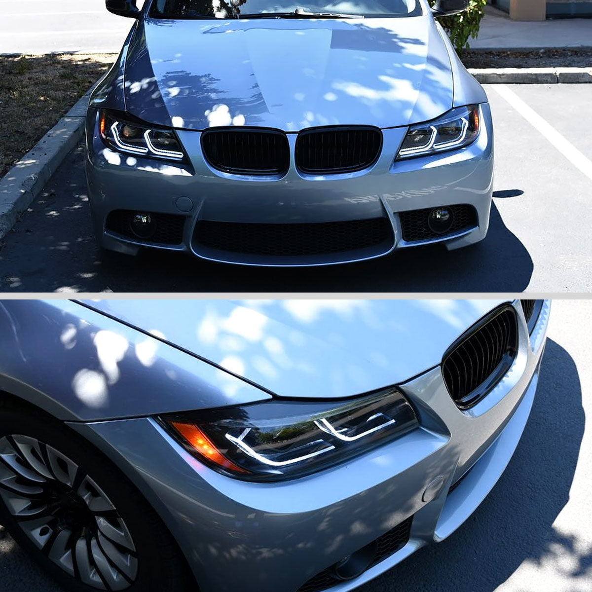 Ronnin - Fits 2006-2011 BMW 3-Series 325i 328i 330i E90 Sedan E91 Wagon Upgraded Replacement Dual Projector Halogen Headlights LED Sequential Turn Signals + Animated Startup Pair | Black