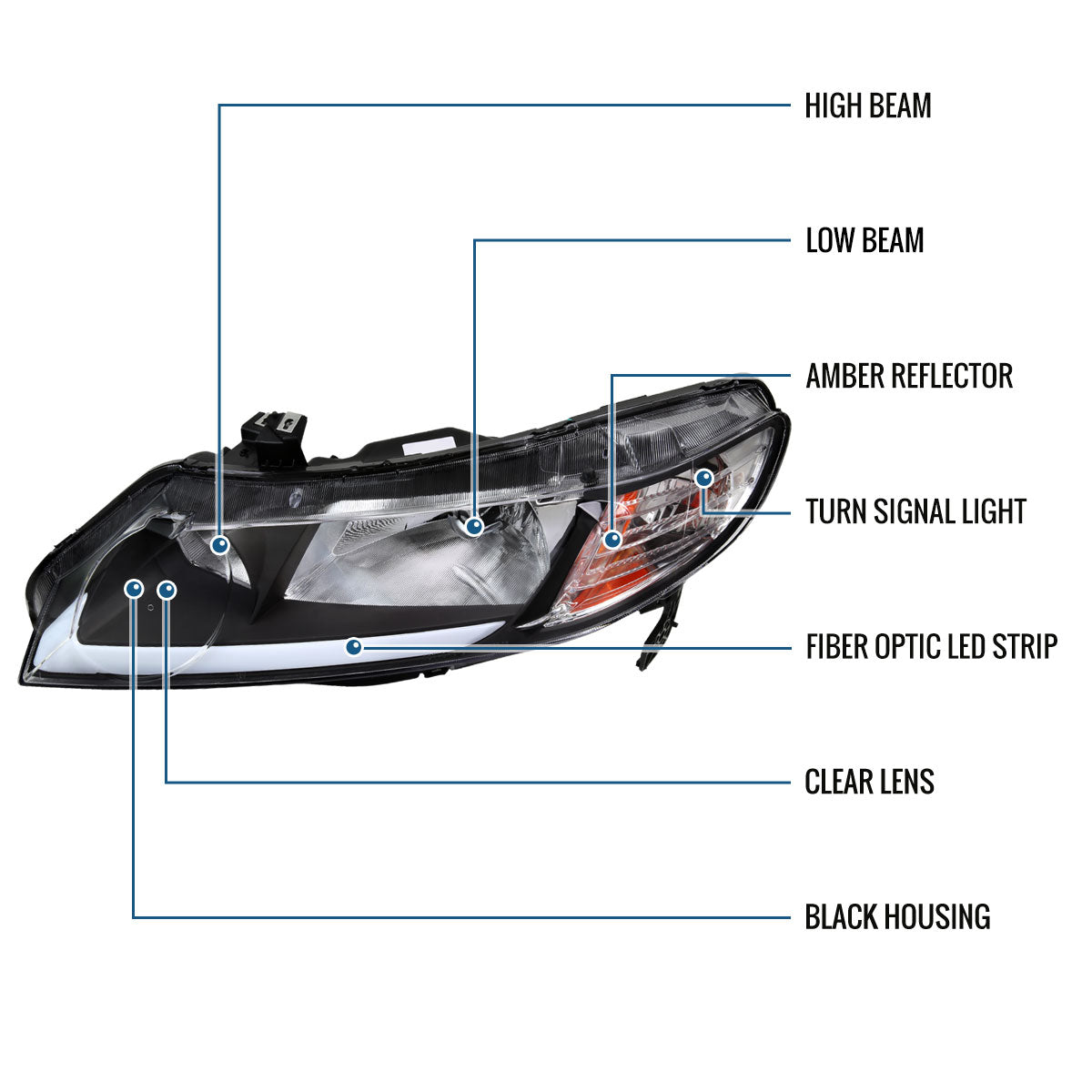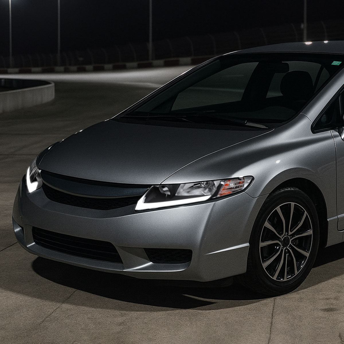 Ronnin - Fits 2006-2011 Honda Civic 4-Door Sedan LED Tube Running Lights Headlights Replacement Assembly Pair | Black