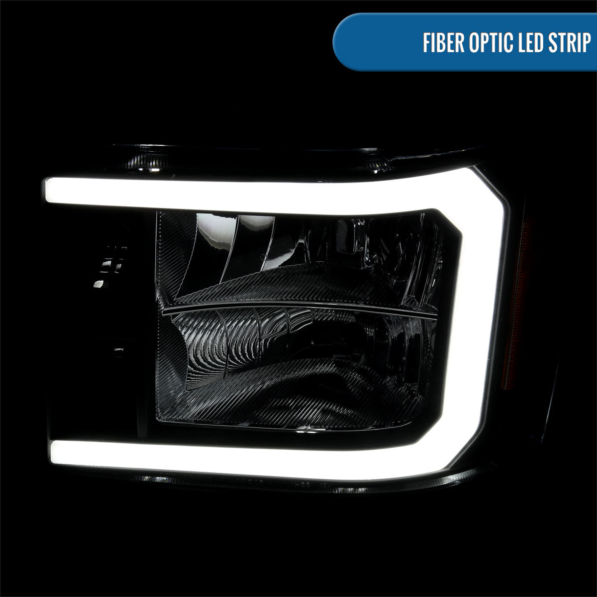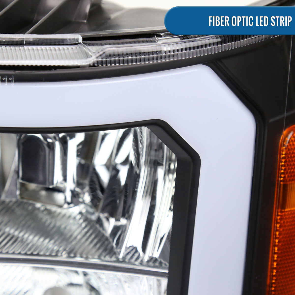 Ronnin - Fits 2007-2013 GMC Sierra 1500 2500HD 3500HD Upgraded LED Running Tube Lights Headlights Replacement Assembly Pair | Black