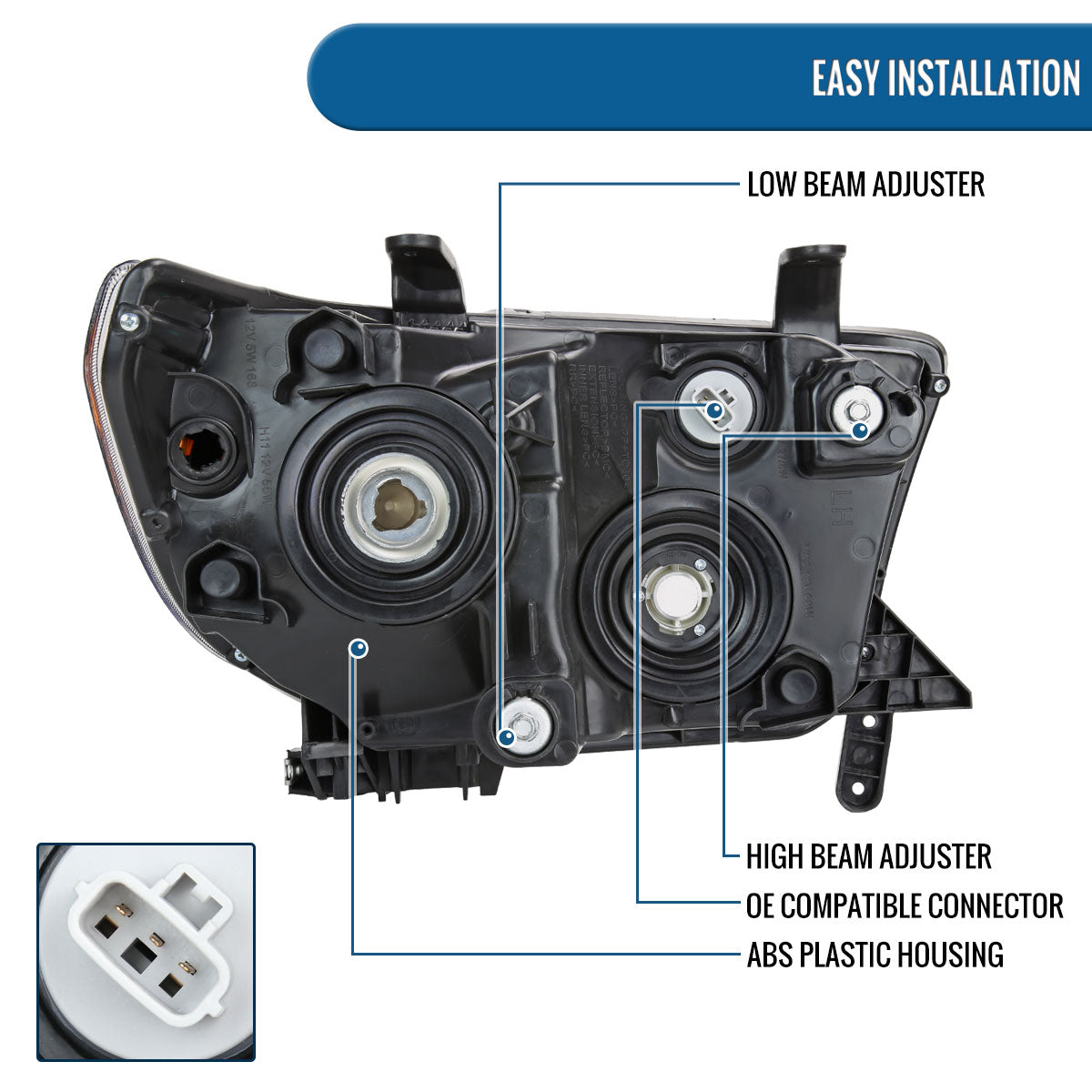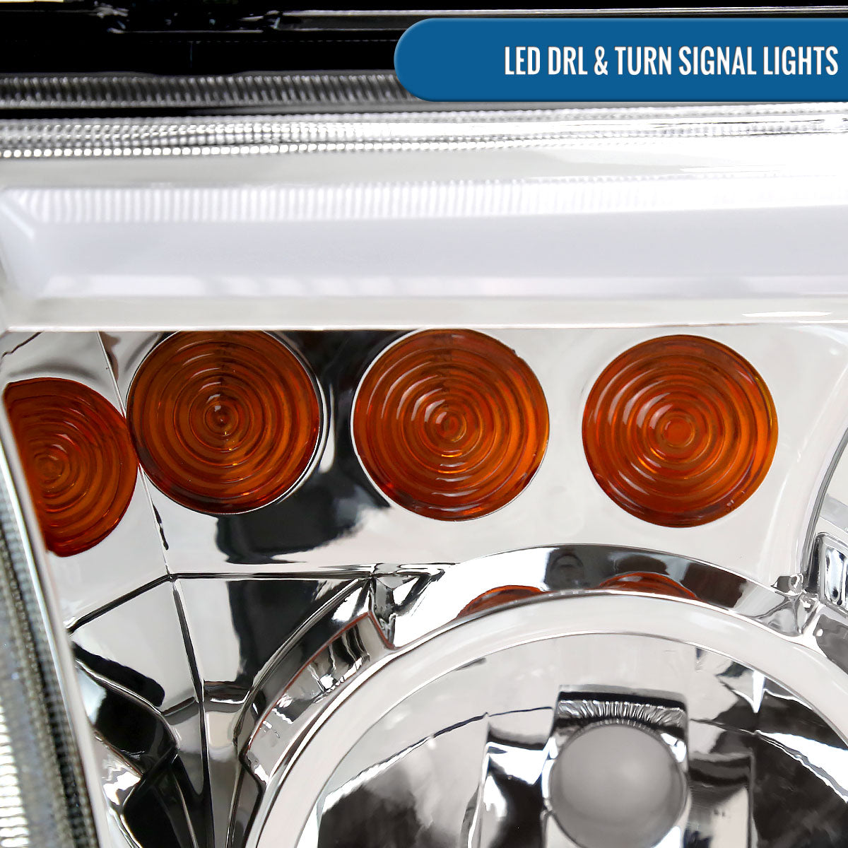 Ronnin - Fits 2007-2013 Toyota Tundra 2008-2017 Toyota Sequoia Upgraded Replacement LED DRL/Turn Signals Headlights Assembly Pair | Chrome