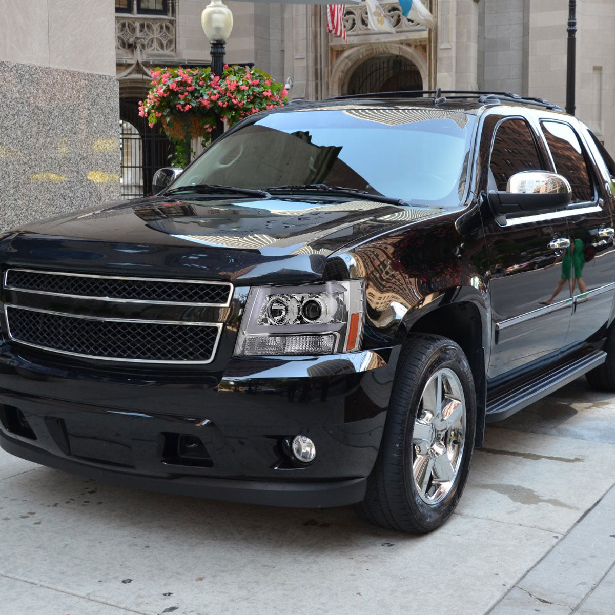 Ronnin - Fits 2007-2014 Chevy Avalanche Suburban Tahoe LED Tube Projector Headlights DRL Assembly Pair | Chrome