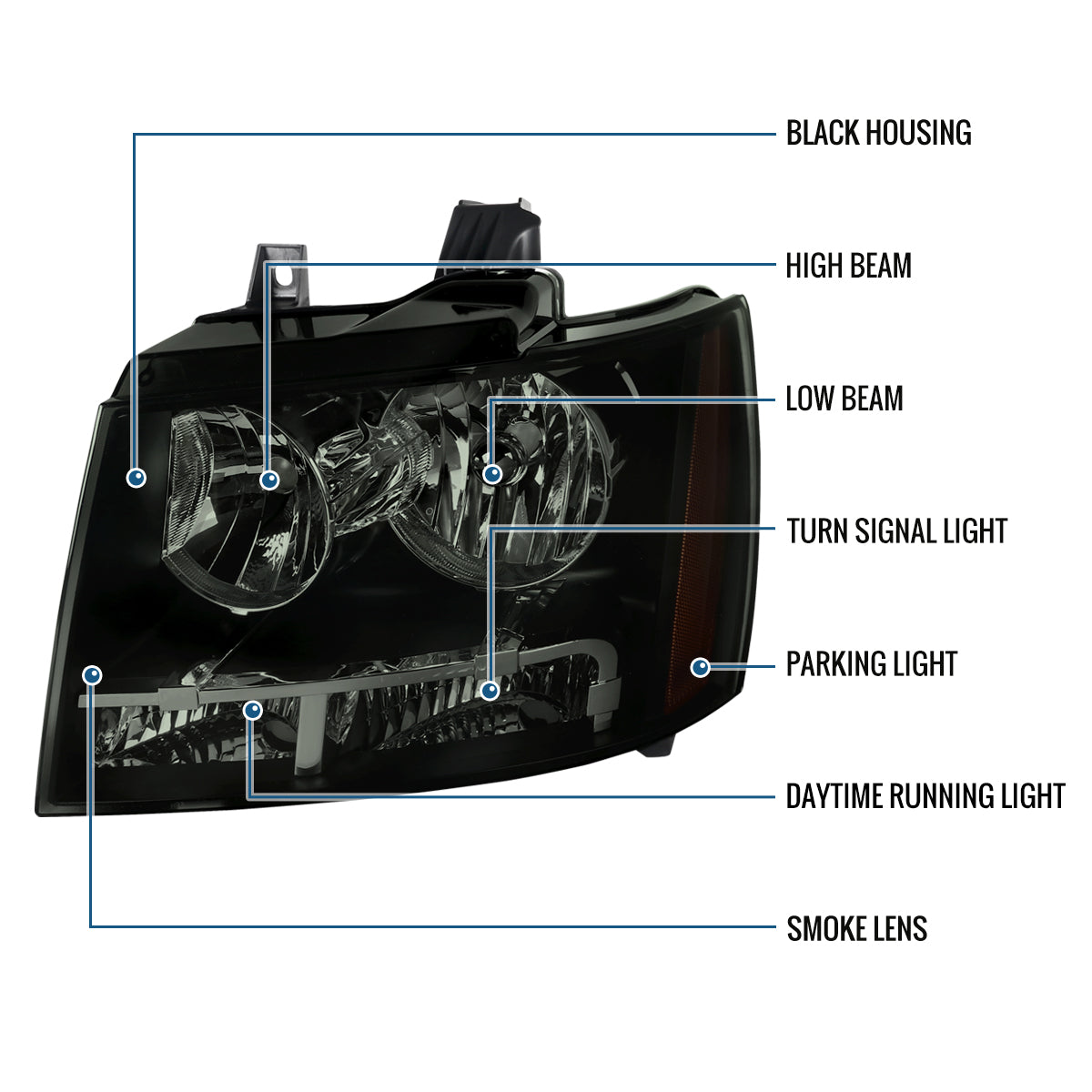Ronnin - Fits 2007-2014 Chevy Avalanche Tahoe Suburban Factory Replacement Headlights Assembly Pair | Black Smoke
