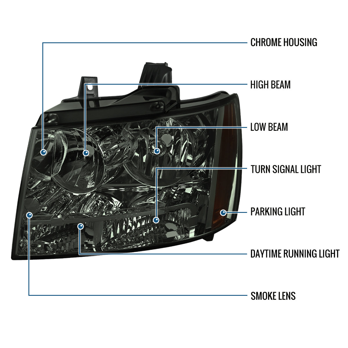 Ronnin - Fits 2007-2014 Chevy Avalanche Tahoe Suburban Factory Replacement Headlights Assembly Pair | Smoke