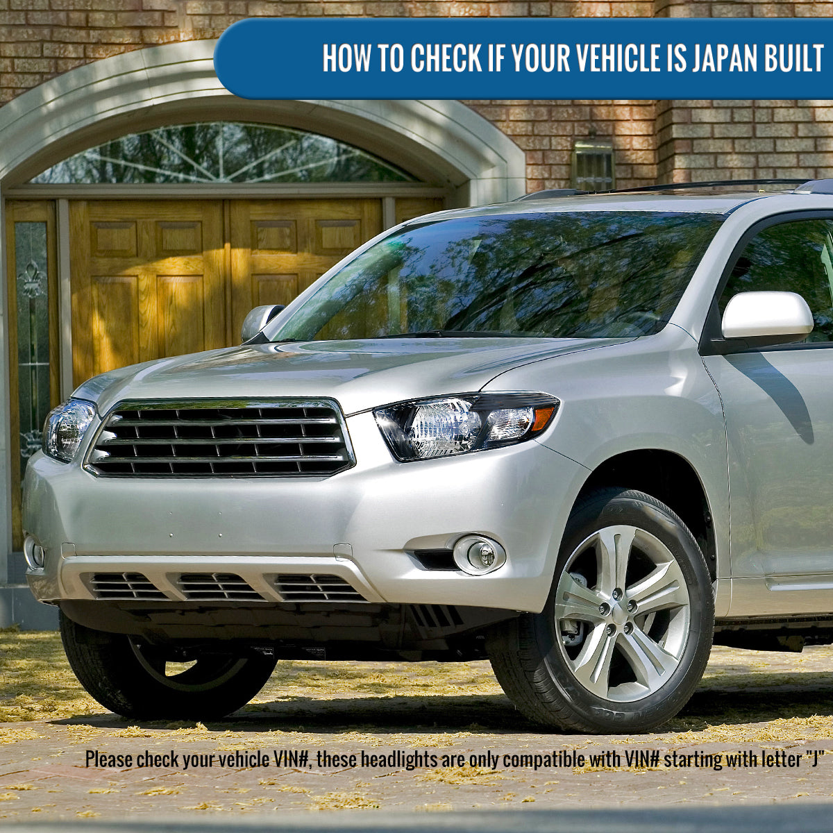 Ronnin - Fits 2008-2010 Toyota Highlander Base Limited SR5 SE Headlights Japan Built Halogen Models Replacement Pair | Black