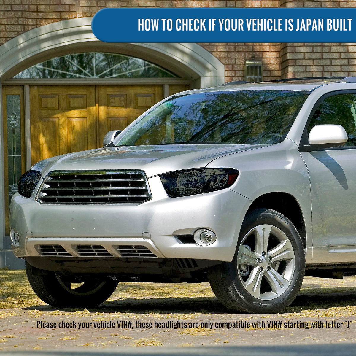 Ronnin - Fits 2008-2010 Toyota Highlander Base Limited SR5 SE Headlights Japan Built Halogen Models Replacement Pair | Smoke