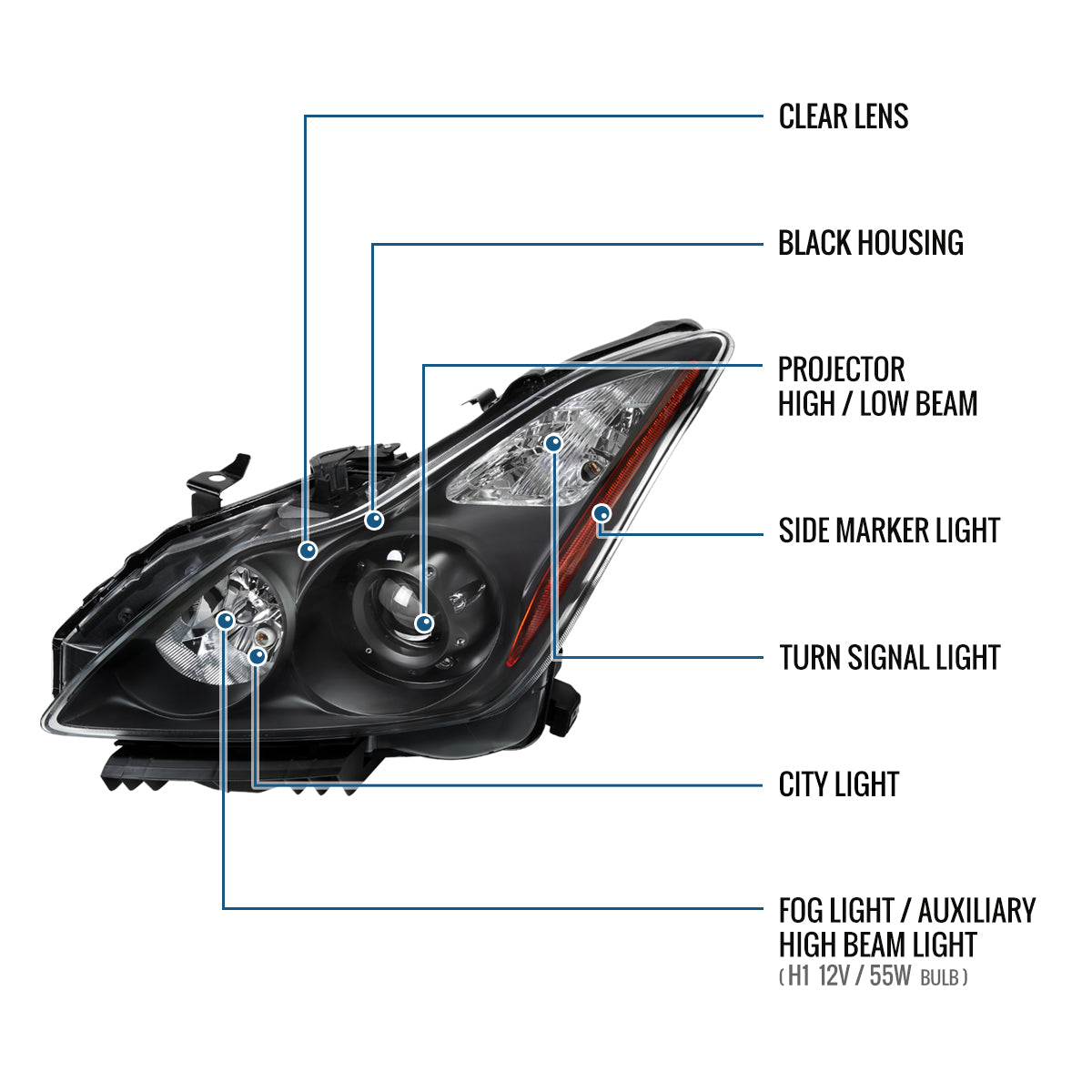 Ronnin - Fits 2008-2013 Infiniti G37 2014-2015 Q60 2Dr Coupe Factory Replacement Projector Headlights Assembly | Black