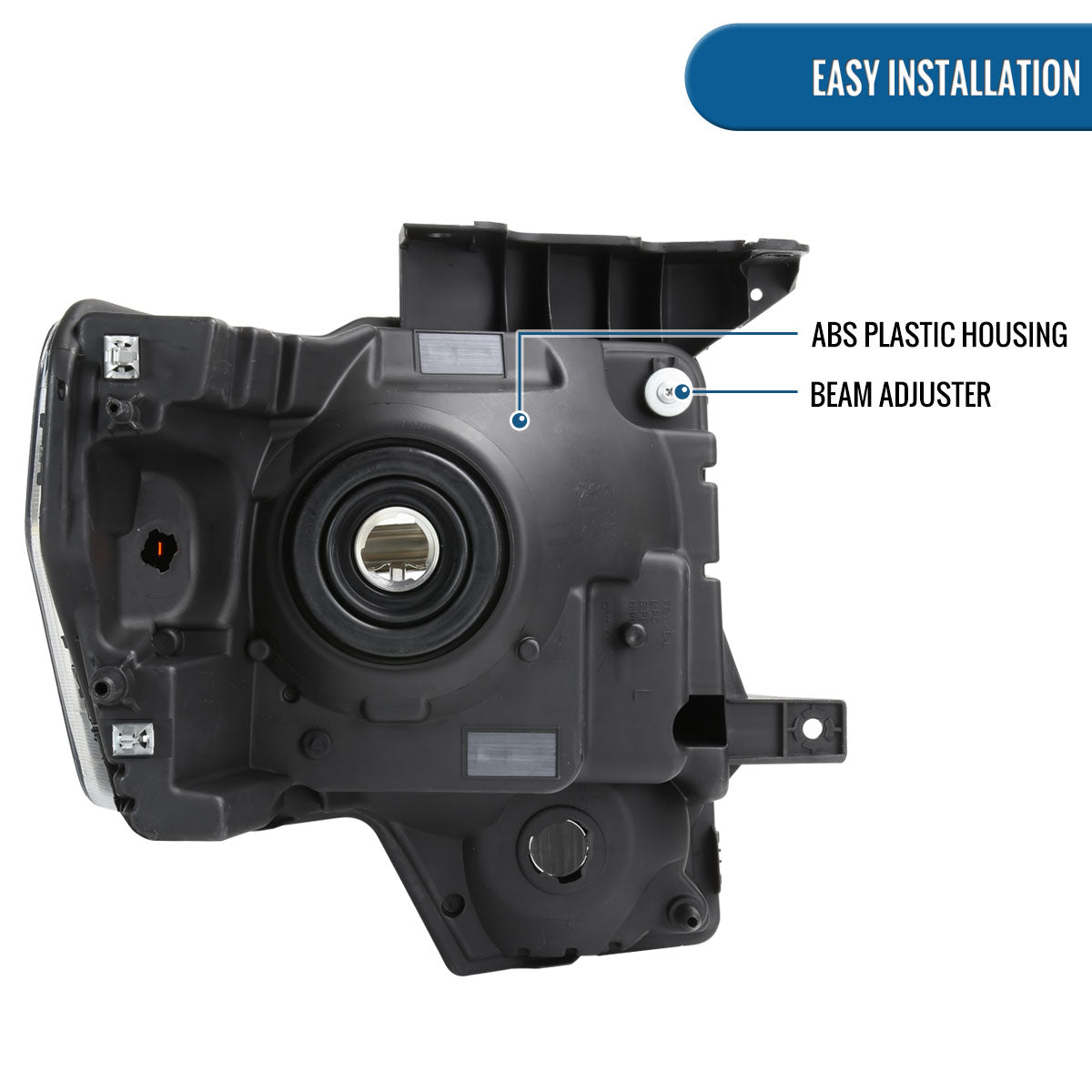 Ronnin - Fits 2009-2014 Ford F150 Pickup Truck Factory Replacement Halogen Headlights Assembly Pair | Chrome