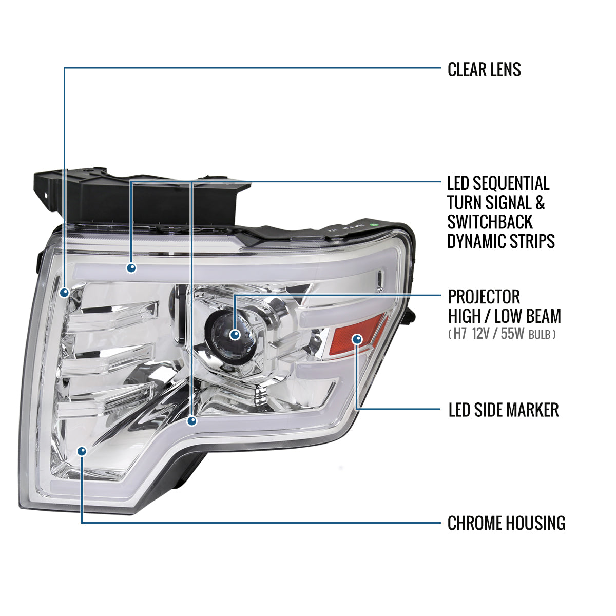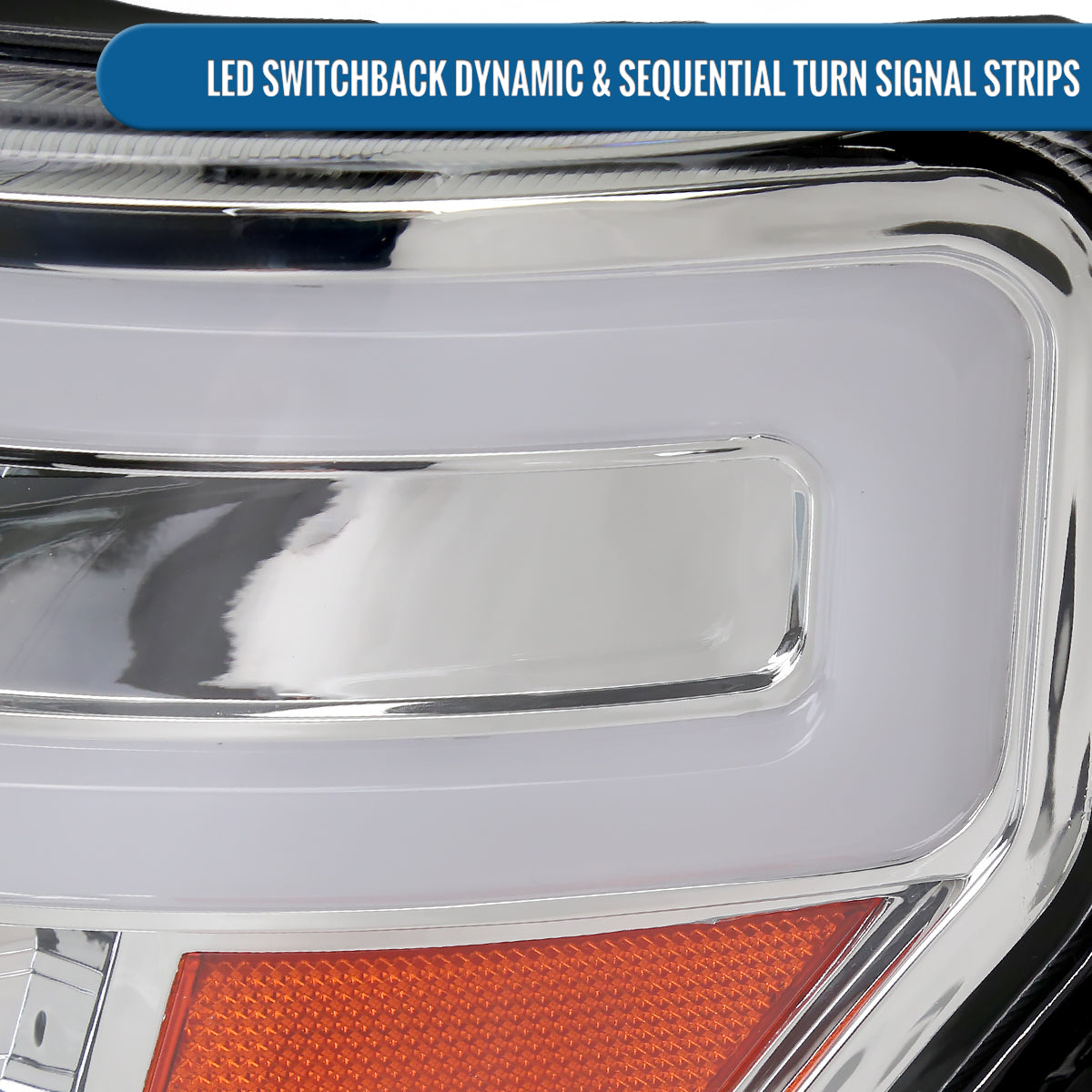 Ronnin - Fits 2009-2014 Ford F150 Pickup Truck Upgraded Halogen Projector Headlights LED Switchback Sequential Turn Signals + Animated Startup Effect Assembly Pair | Chrome