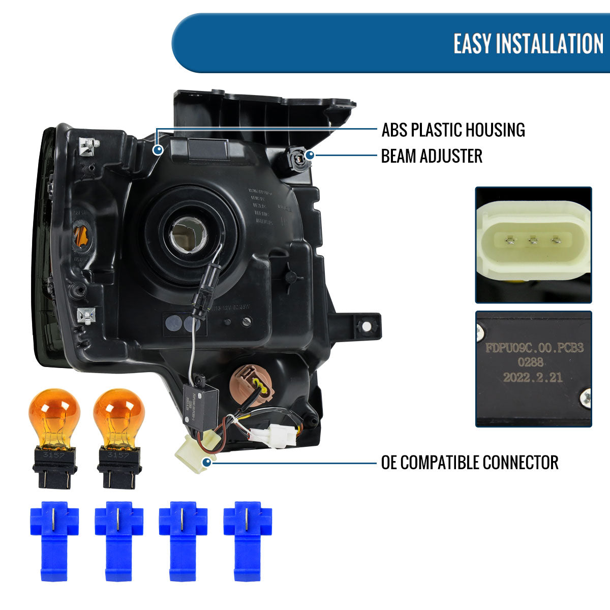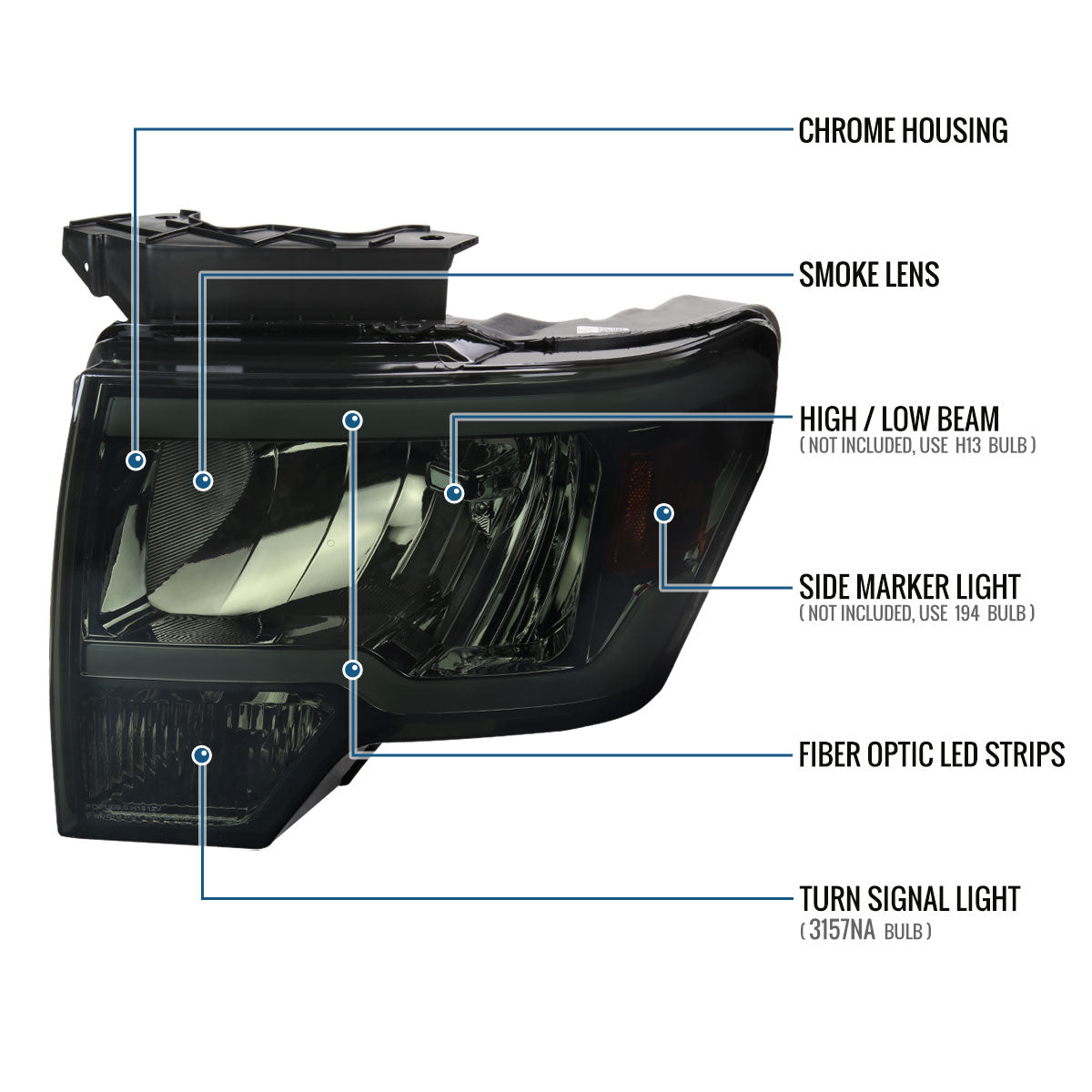 Ronnin - Fits 2009-2014 Ford F150 Upgraded LED Running Tube Lights Headlights Replacement Assembly Pair | Smoke