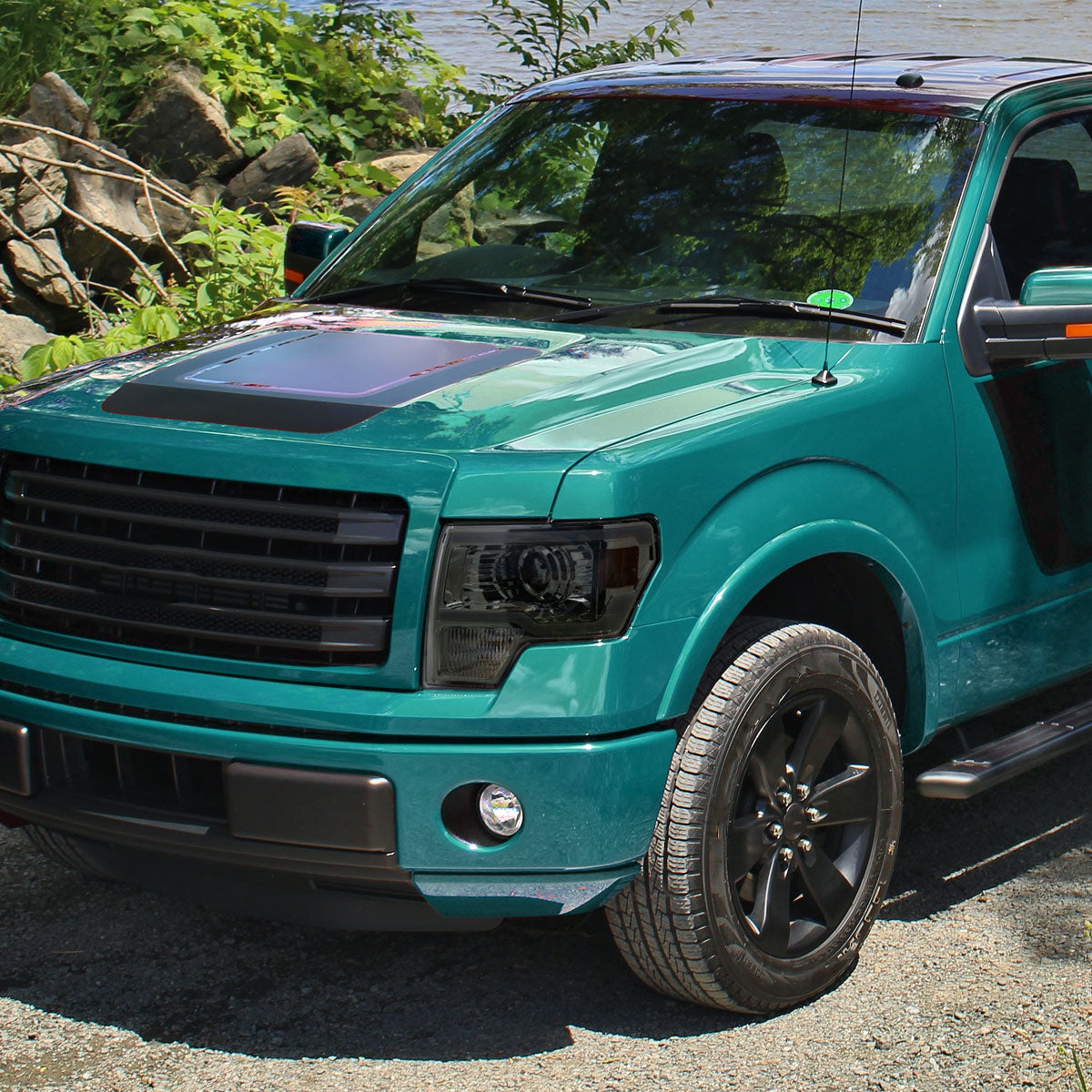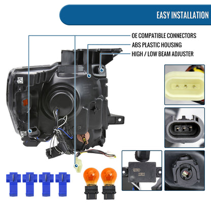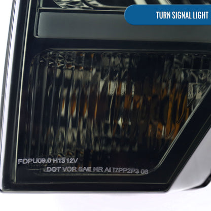 Ronnin - Fits 2009-2014 Ford F150 Upgraded LED Running Tube Lights Projector Headlights Replacement Assembly Pair | Smoke