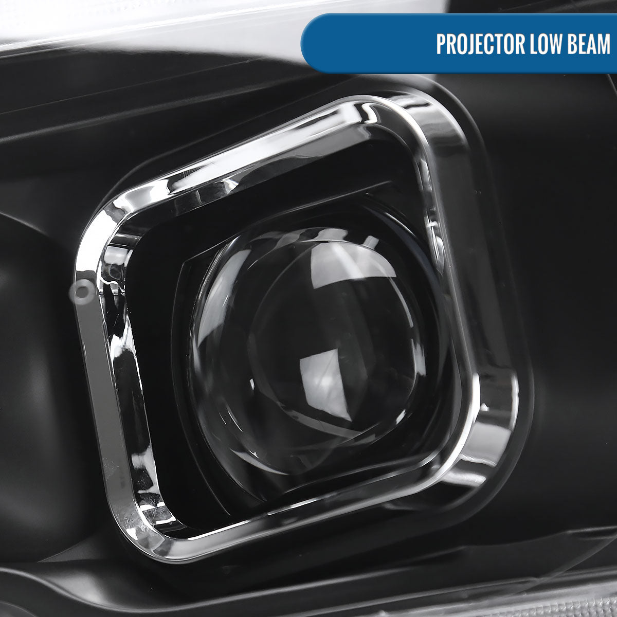 Ronnin - Fits 2009-2018 Ram 1500 2500 3500 2019-2024 Ram 1500 Classic Amber DRL Halogen Dual Projector Headlights LED Switchback Sequential Signal + Animated Startup Effect Assembly Pair | Black
