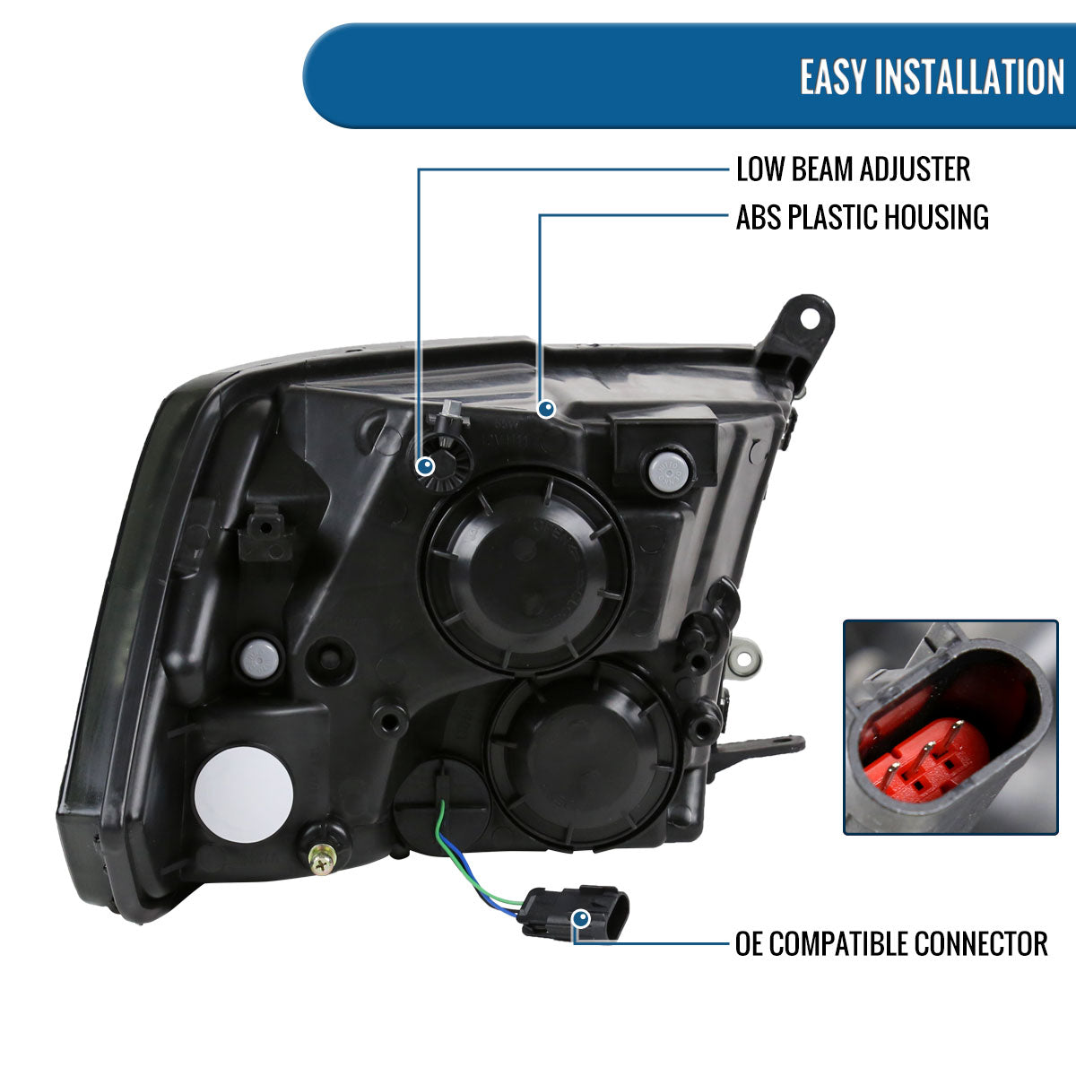 Ronnin - Fits 2009-2018 Ram 1500 2500 3500 2019-2024 Ram 1500 Classic Factory Replacement Dual Quad Headlights Assembly Pair | Chrome