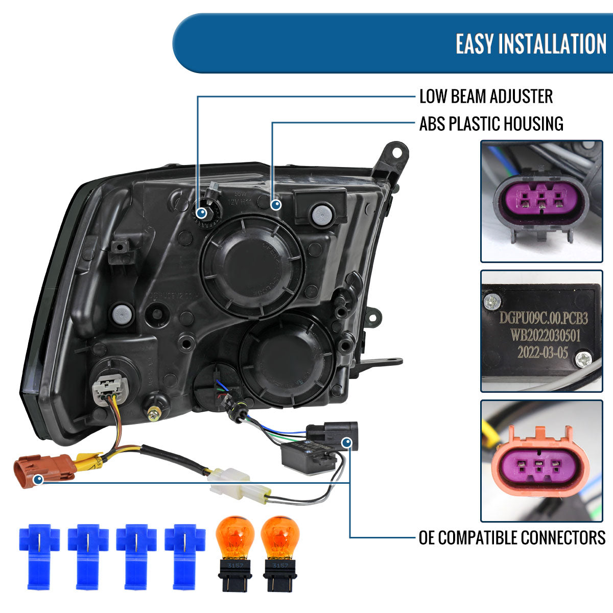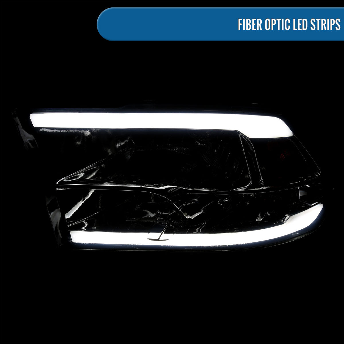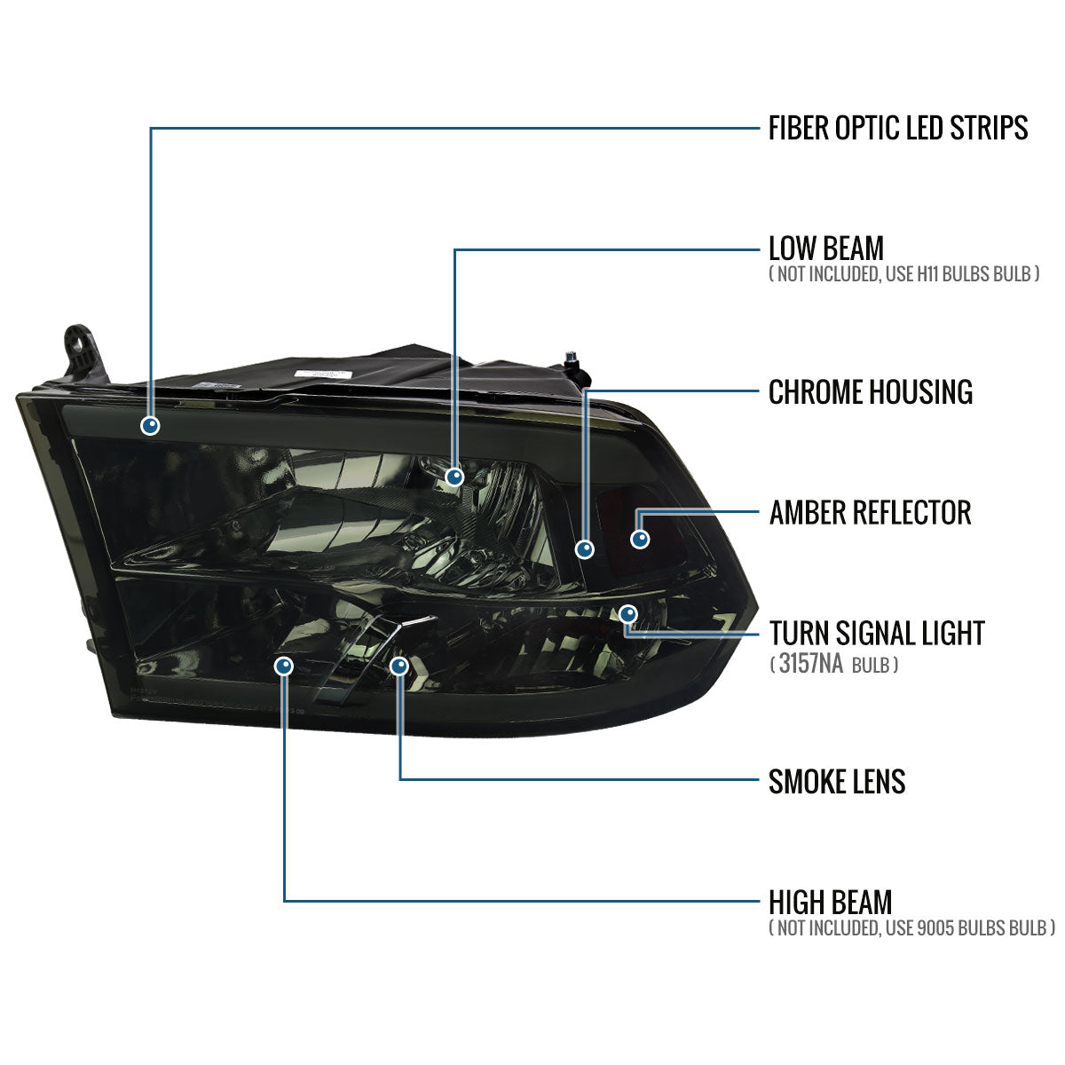Ronnin - Fits 2009-2018 Ram 1500 2500 3500 2019-2024 Ram 1500 Classic Factory Replacement Upgraded LED Running Lights Headlights Assembly Pair | Smoke