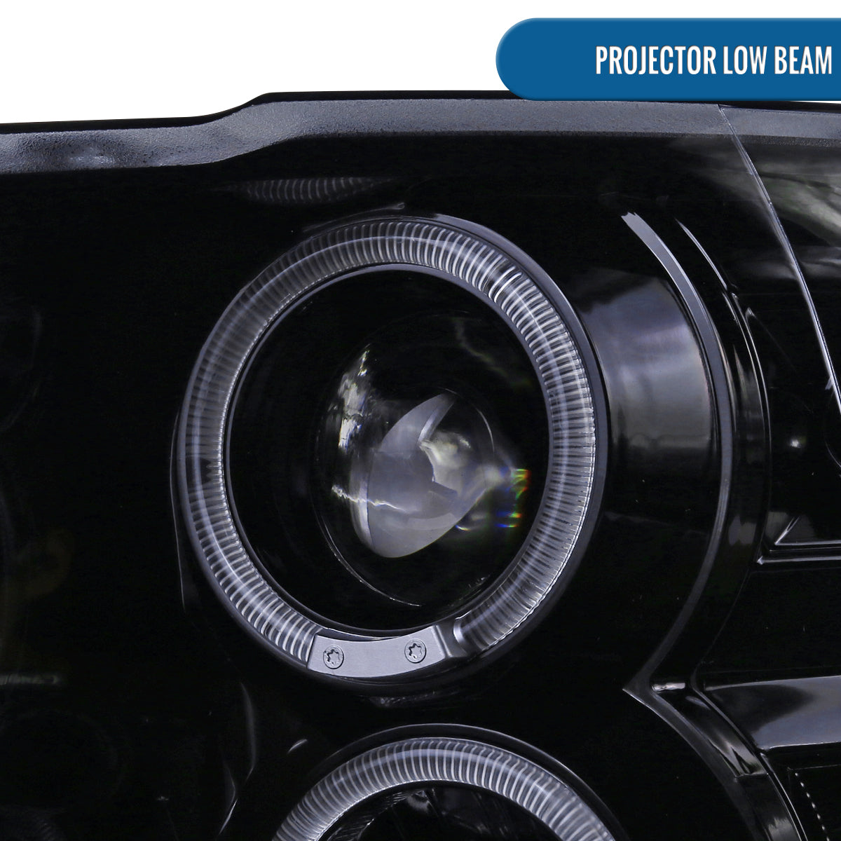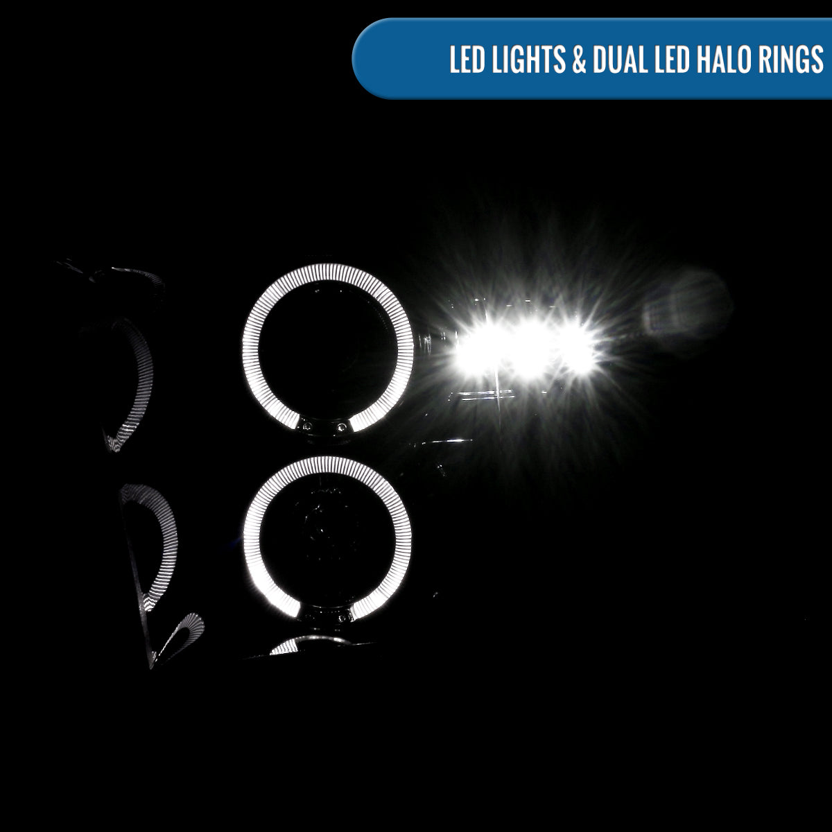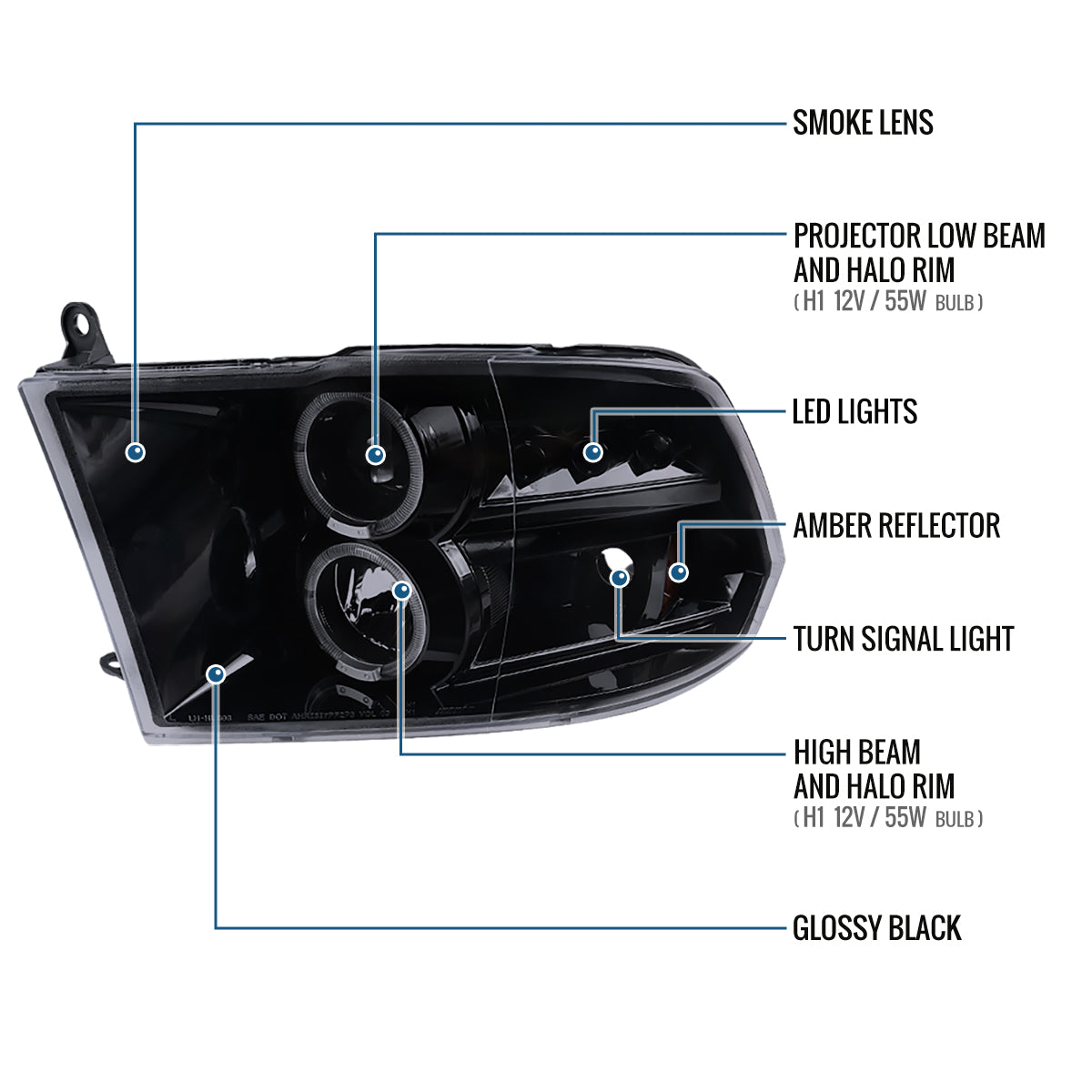 Ronnin - Fits 2009-2018 Ram 1500 2500 3500 2019-2024 Ram 1500 Classic LED Dual Halo Rims Running Lights Halogen Projector Headlights Assembly Pair | Black Smoke