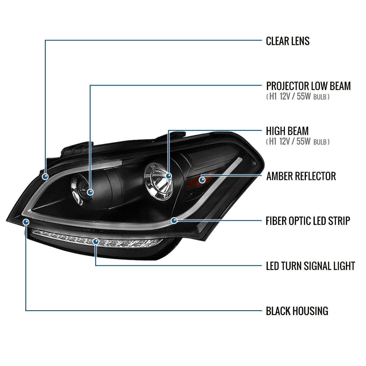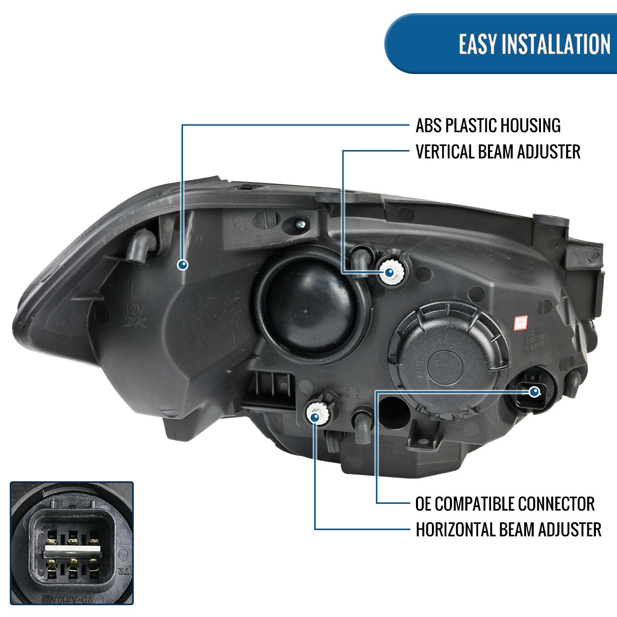 Ronnin - Fits 2010-2011 Kia Soul LED Tube Turn Signal Lights Projector Headlights Assembly Replacement Pair | Black