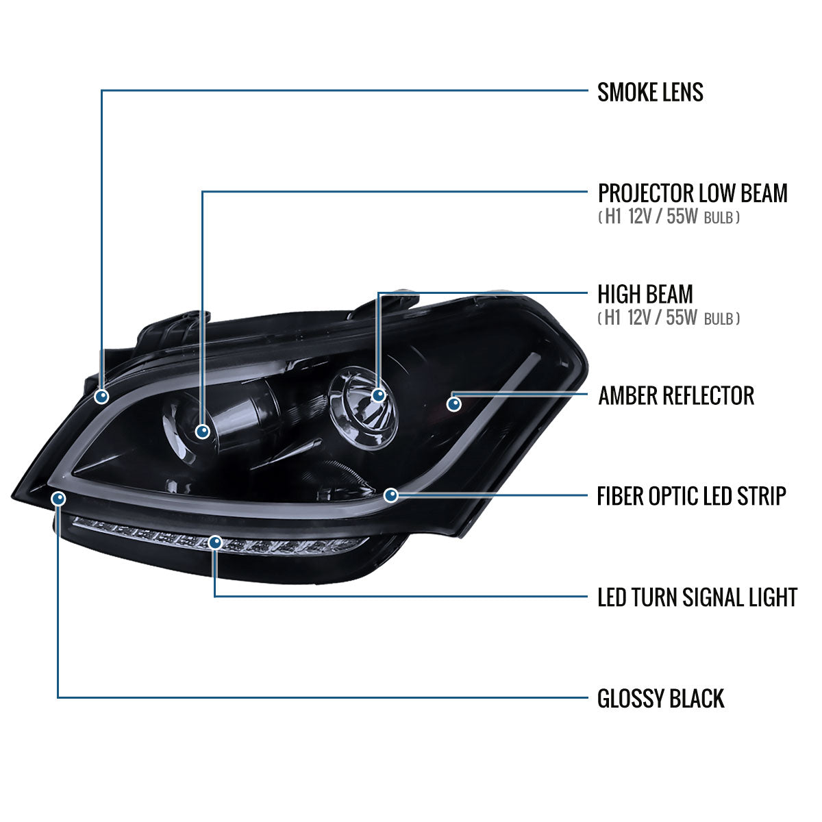 Ronnin - Fits 2010-2011 Kia Soul LED Tube Turn Signal Lights Projector Headlights Assembly Replacement Pair | Black Smoke