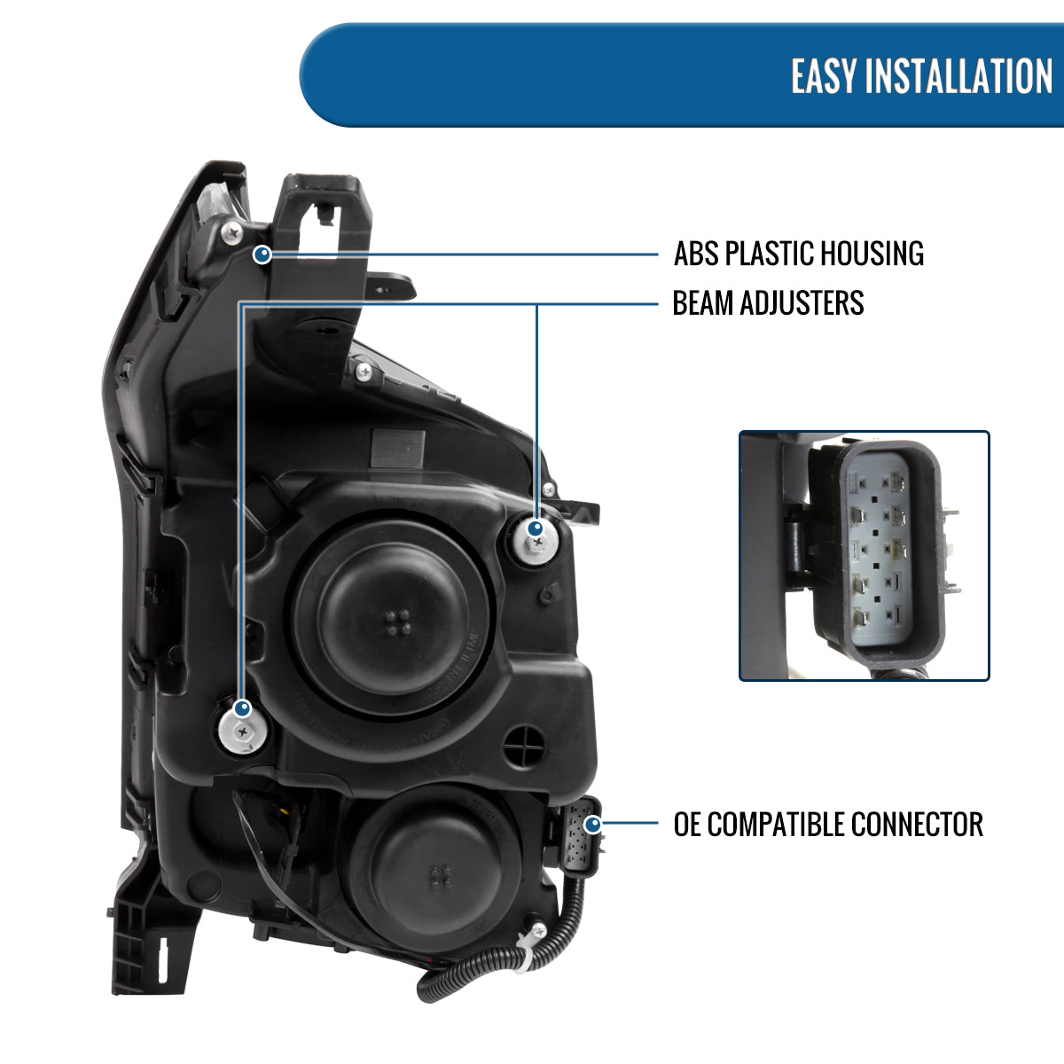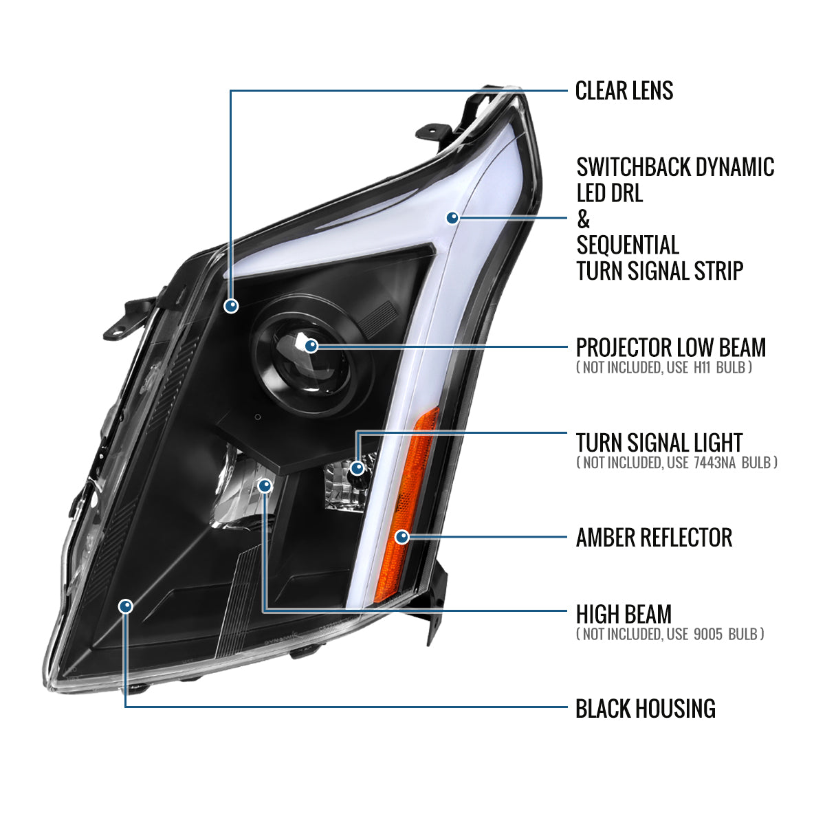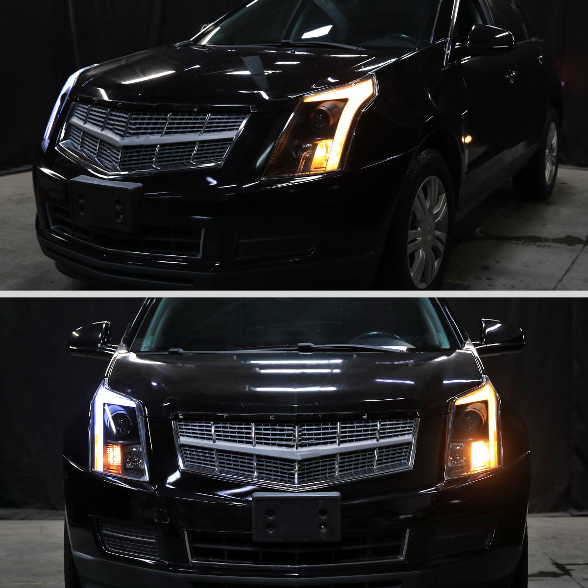 Ronnin - Fits 2010-2016 Cadillac SRX Projector Headlights LED Tube Switchback Sequential Turn Signals + Animated Startup Effect Parking Assembly Pair | Black