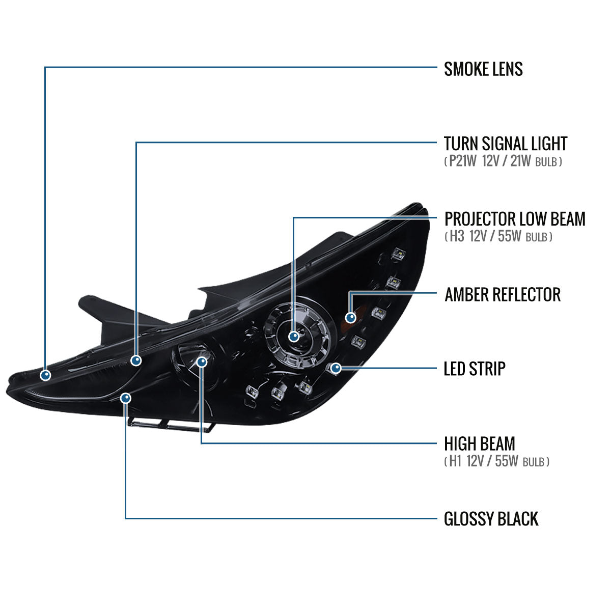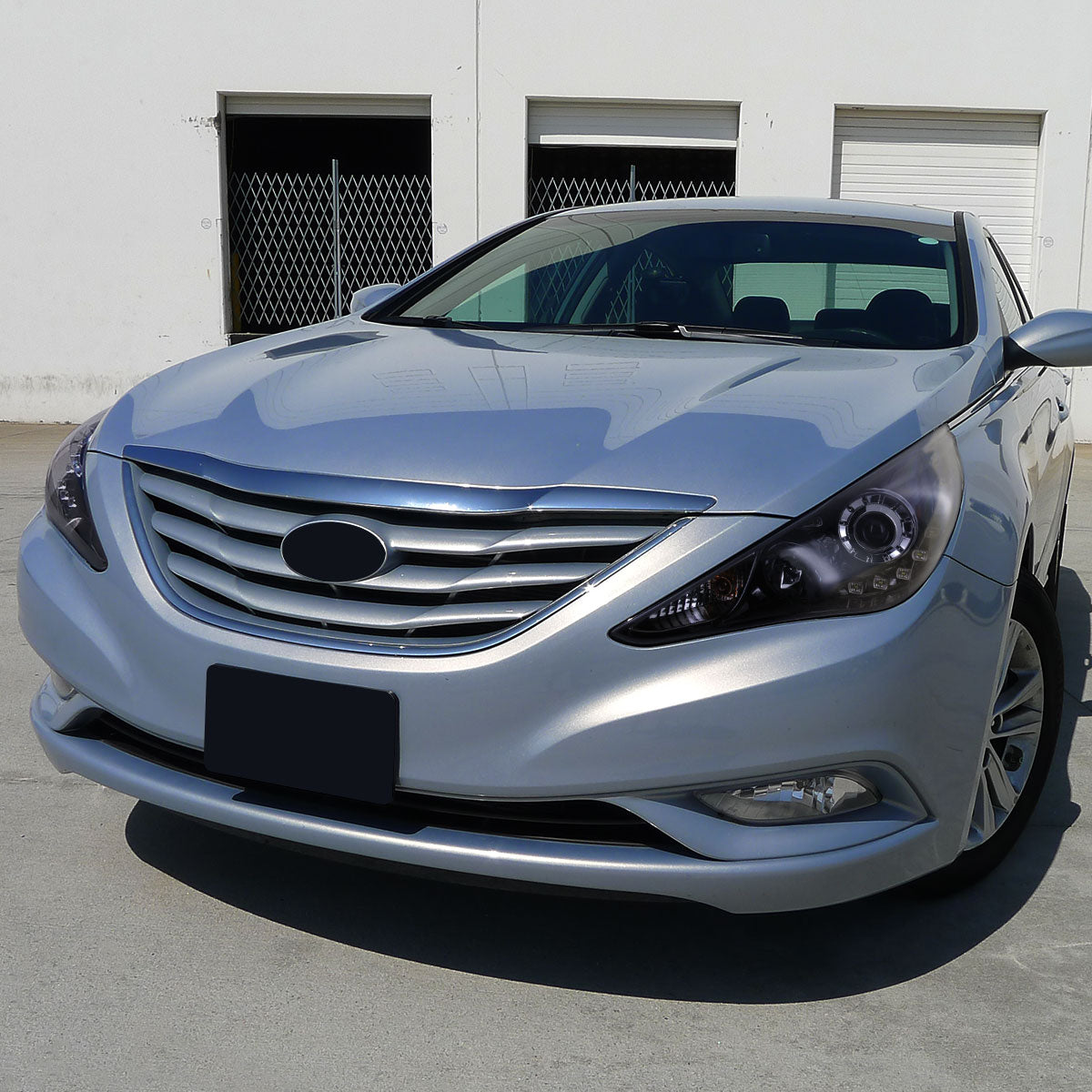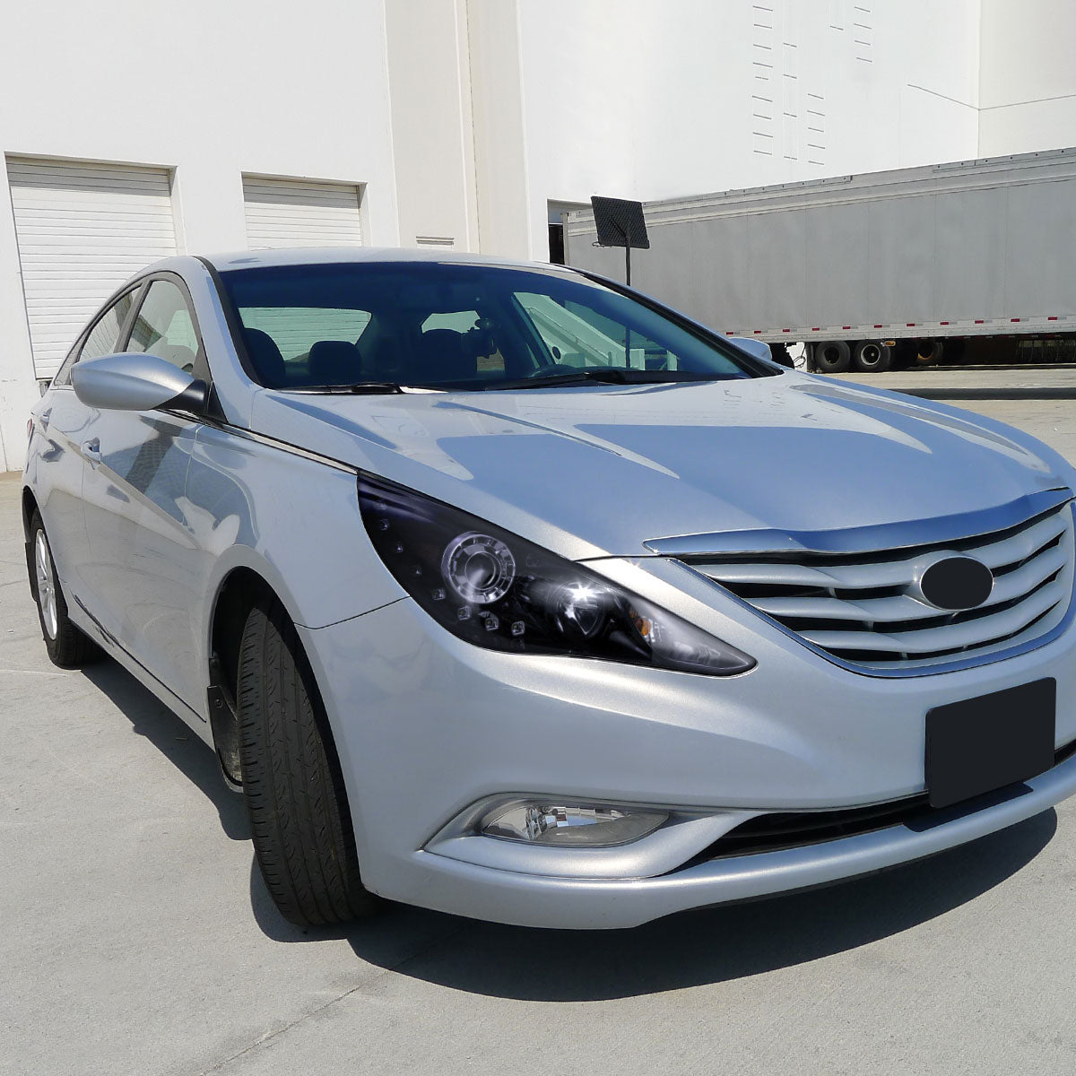 Ronnin - Fits 2011-2014 Hyundai Sonata Halogen Projector Headlights LED Running Lights Assembly Pair | Black Smoke
