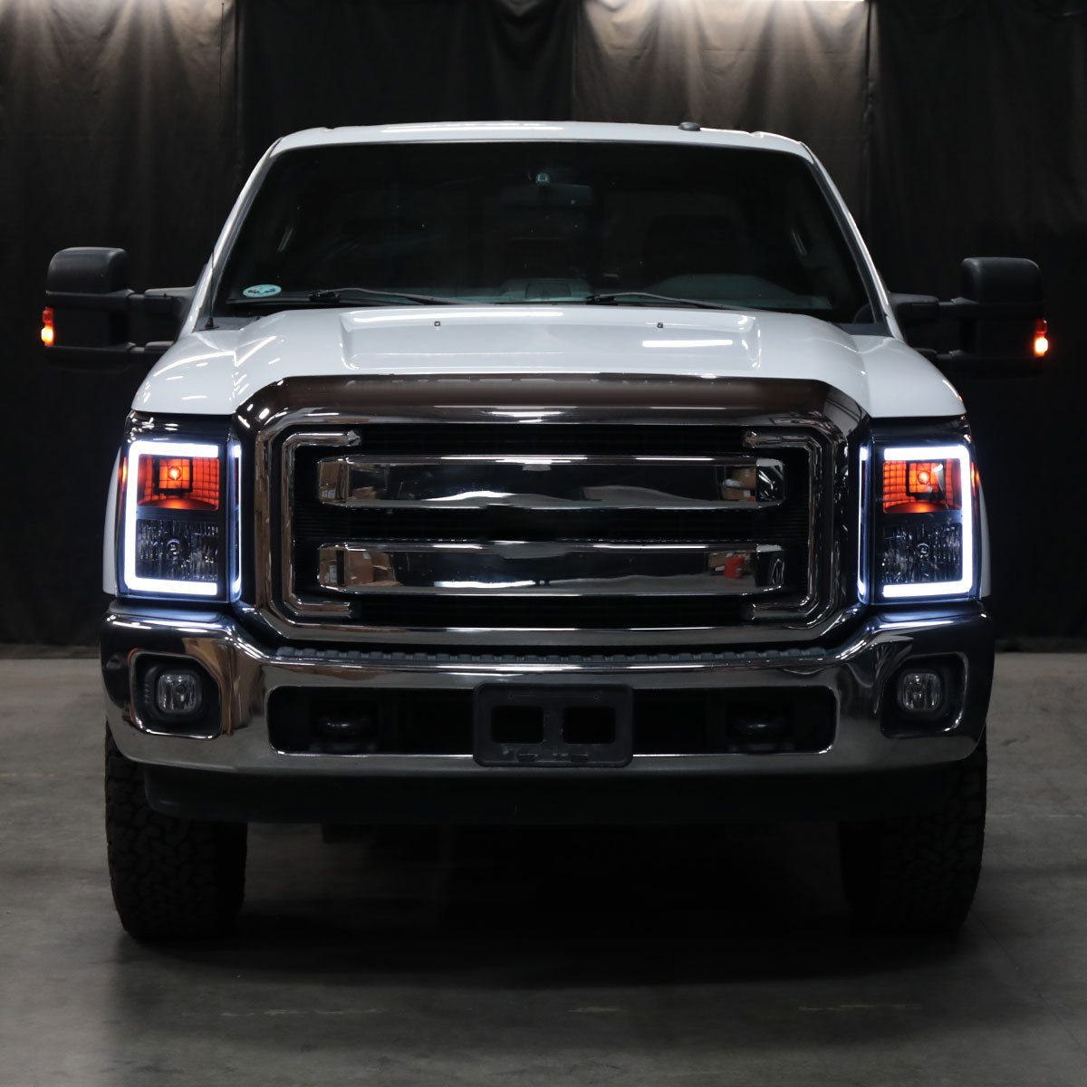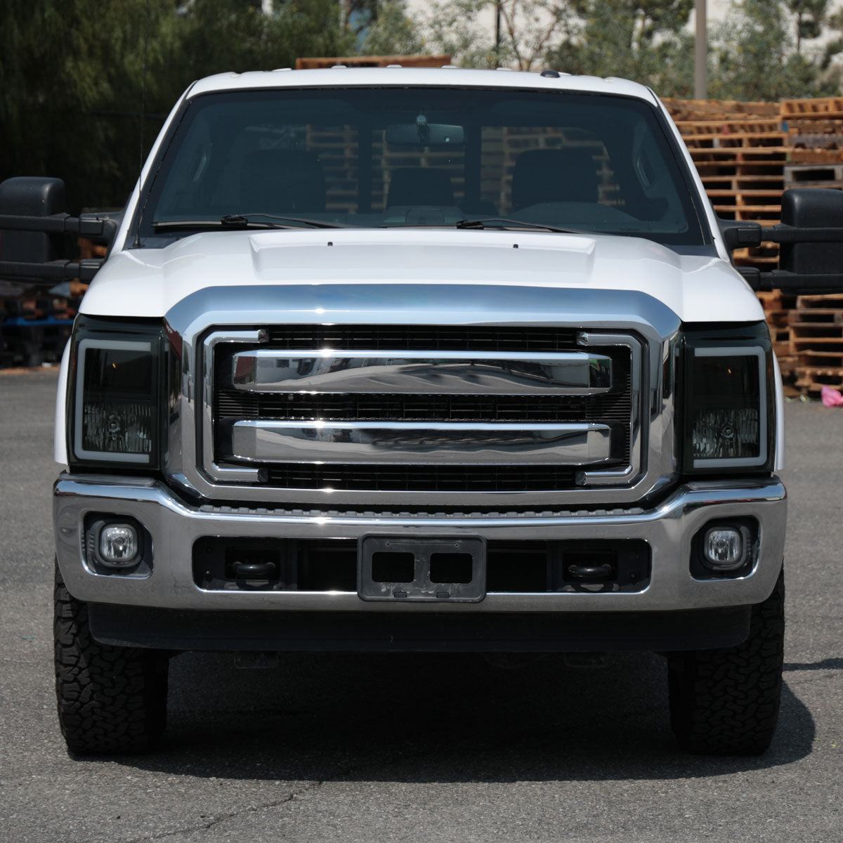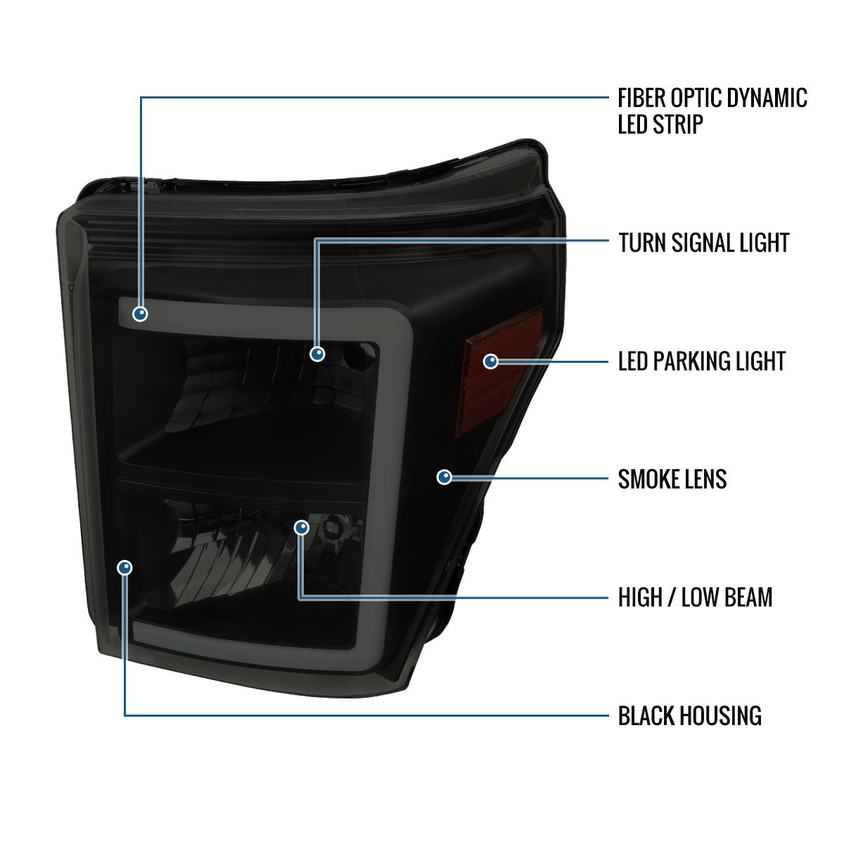 Ronnin - Fits 2011-2016 Ford F250 F350 F450 F550 Super Duty Upgraded LED Tube Headlights Replacement Animated Startup Effect Assembly Pair | Black Smoke