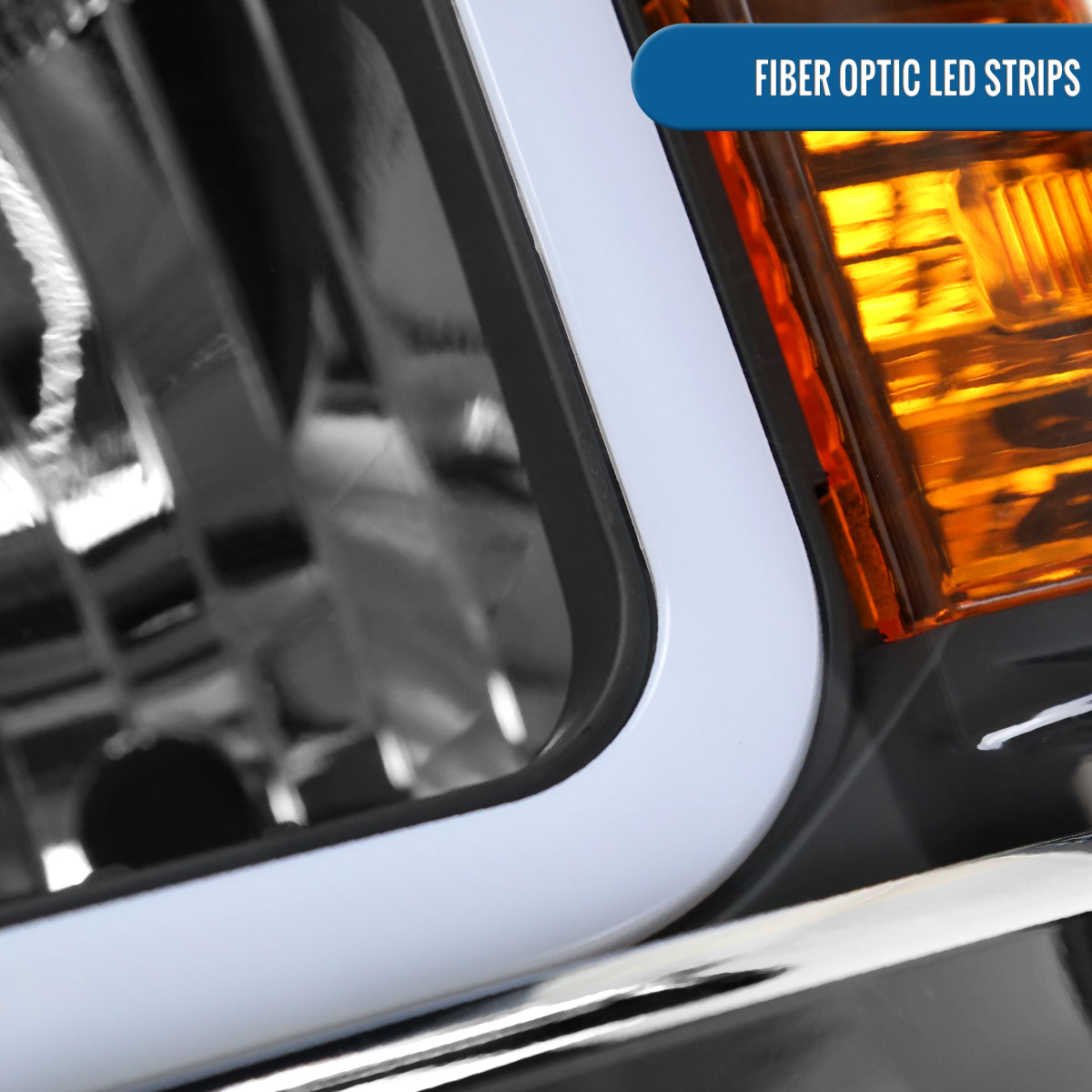 Ronnin - Fits 2014-2015 Chevy Silverado 1500 Upgraded LED Tube Headlights Assembly Pair | Black | Titanium Trim